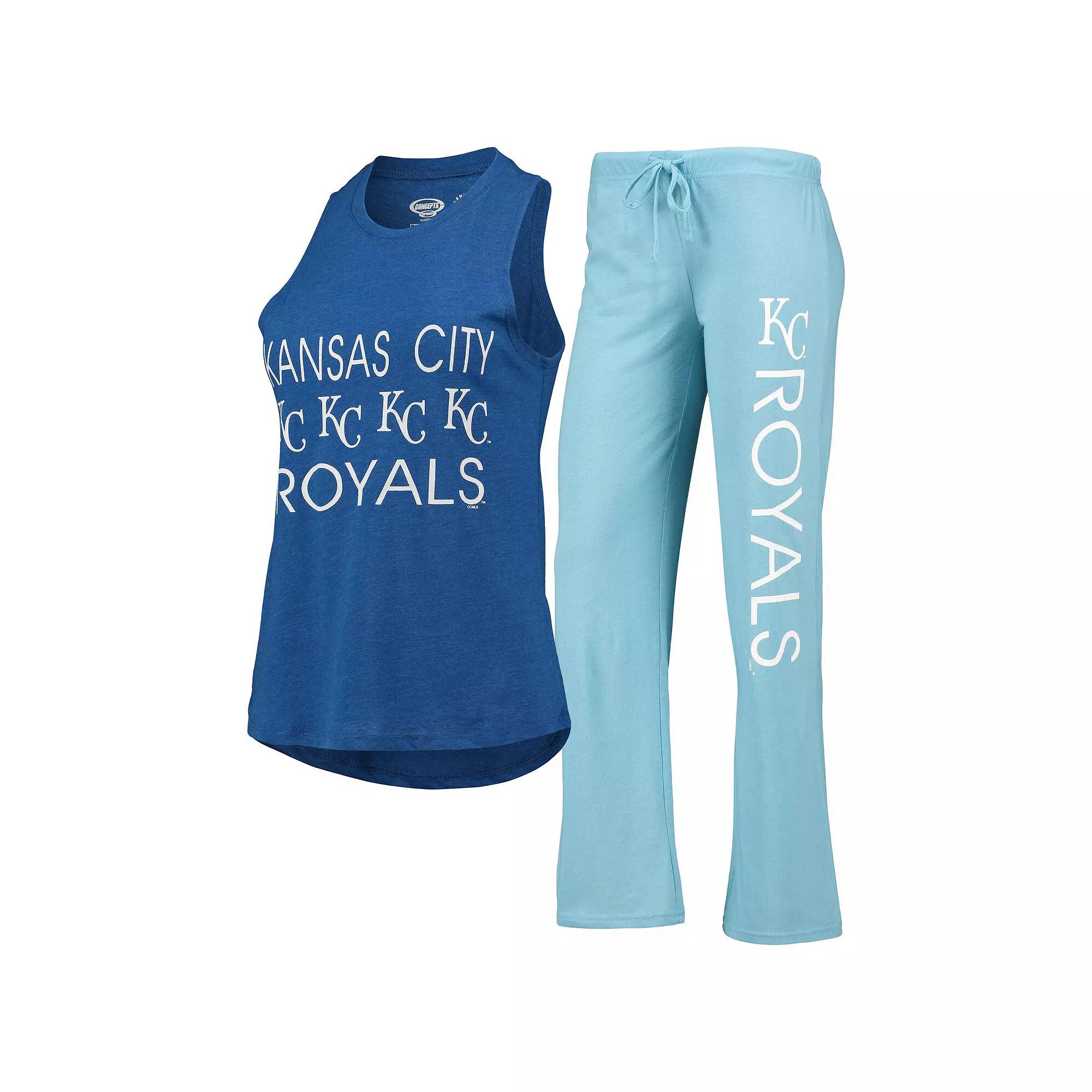 Fantasize about your Kansas City Royals taking the chip each night you cuddle up in this Meter sleep set by Concepts Sport. It includes a muscle tank top and pants, both with a striking Kansas City Royals design. Crafted from super-soft dual-blend material, this comfy set has you ready to hit it out of the park in your wildest dreams.Fantasize about your Kansas City Royals taking the chip each night you cuddle up in this Meter sleep set by Concepts Sport. It includes a muscle tank top and pants, both with a striking Kansas City Royals design. Crafted from super-soft dual-blend material, this comfy set has you ready to hit it out of the park in your wildest dreams.PRODUCT FEATURESBrand: Concepts SportCrew neckElastic waistband with drawstringImportedInseam for size S women approx. 29Machine wash, tumble dry lowMaterial: 60% Cotton/40% PolyesterOfficially licensedRounded hemScreen print graphicsSet includes tank top and pantsSleevelessTagless Collar Color: Light Blue. Gender: female. Age Group: adult.
