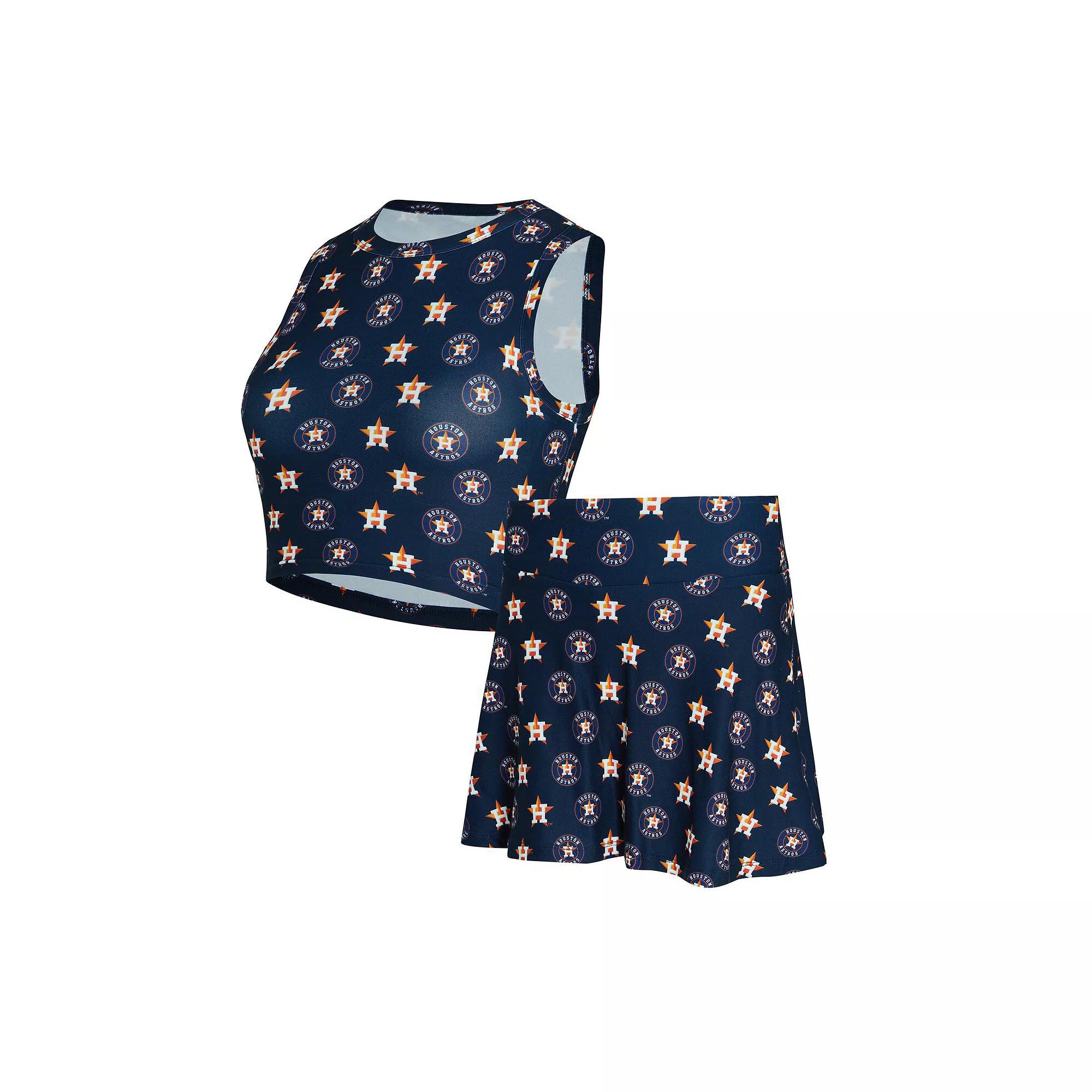 Show off your Houston Astros spirit in comfort and style with this Concepts Sport Knit Tank Top & Skort Set. Made from a luxuriously soft and stretchy polyester-spandex blend, this set provides the ultimate comfort for lounging at home or catching the game. Featuring all-over team logos on the tank top and solid fabric on the underlayer shorts, this set allows you to represent the Houston Astros in style.Show off your Houston Astros spirit in comfort and style with this Concepts Sport Knit Tank Top & Skort Set. Made from a luxuriously soft and stretchy polyester-spandex blend, this set provides the ultimate comfort for lounging at home or catching the game. Featuring all-over team logos on the tank top and solid fabric on the underlayer shorts, this set allows you to represent the Houston Astros in style.PRODUCT FEATURESElastic waistband at skirtBrand: Concepts SportImportedLounge in ultimate style with soft and stretchy fabricOfficially licensedSleevelessAllover team logos with solid fabric on underlayer shortsMaterial: 92% Polyester/8% SpandexMachine wash, tumble dry low Color: Navy. Gender: female. Age Group: adult.