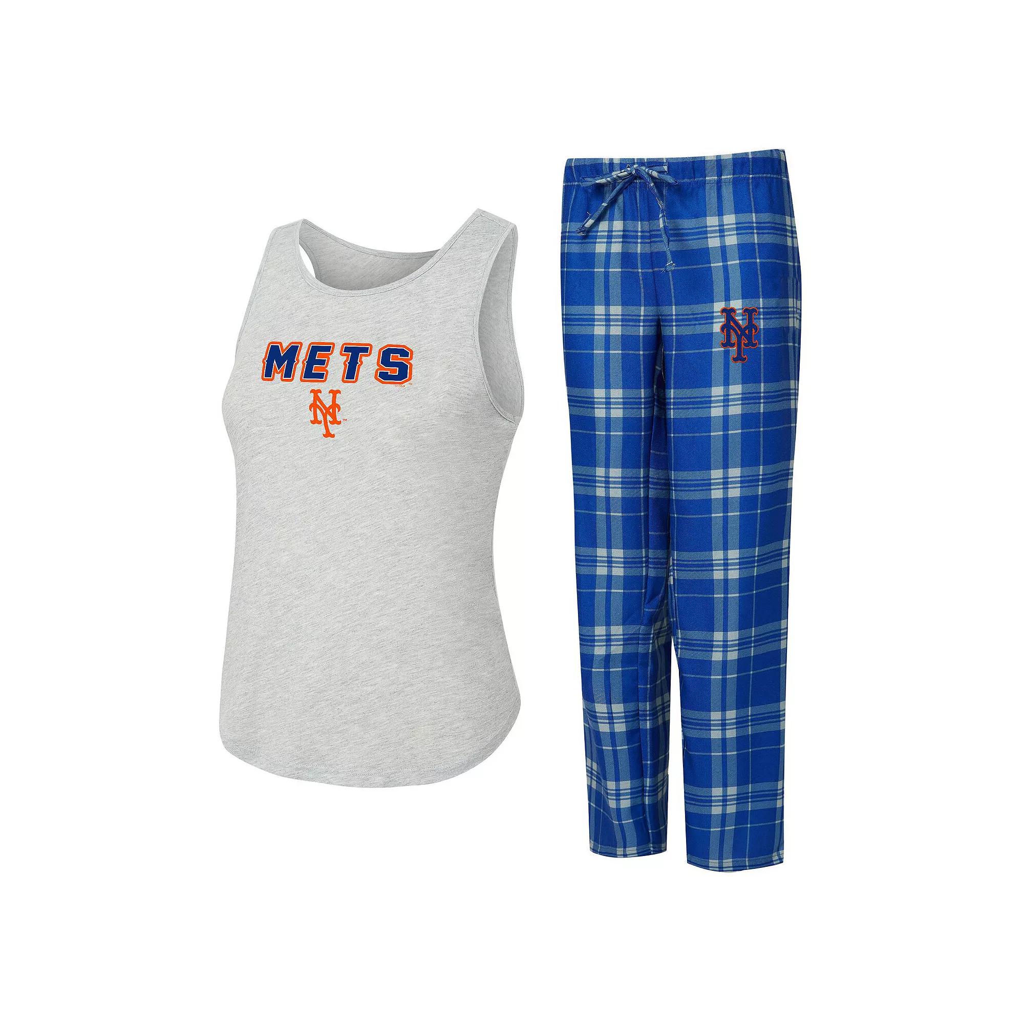 Snuggle up for game day in this New York Mets Regulate Tank & Pant Set from Concepts Sport. This sleep set features a stylish racerback tank top with the team graphic and script wordmark printed across the torso for a sporty look. Crafted from a blend of soft and breathable polyester and rayon for the top and 100% polyester for the pants, this set ensures you stay cool and comfortable while sleeping or cheering on the New York Mets. Brand: Concepts Sport. Officially licensed. Machine wash, tumble dry low. Imported. Tank with rounded hem. Size S inseam measures approx. 30''. Set includes a racerback tank and a pair of pants. Pants with embroidered team logo. Sleeveless. Team graphics printed across torso. Elastic waistband with drawstring for an adjustable fit. Color: Blue. Gender: female. Age Group: adult. Material: COTTON.