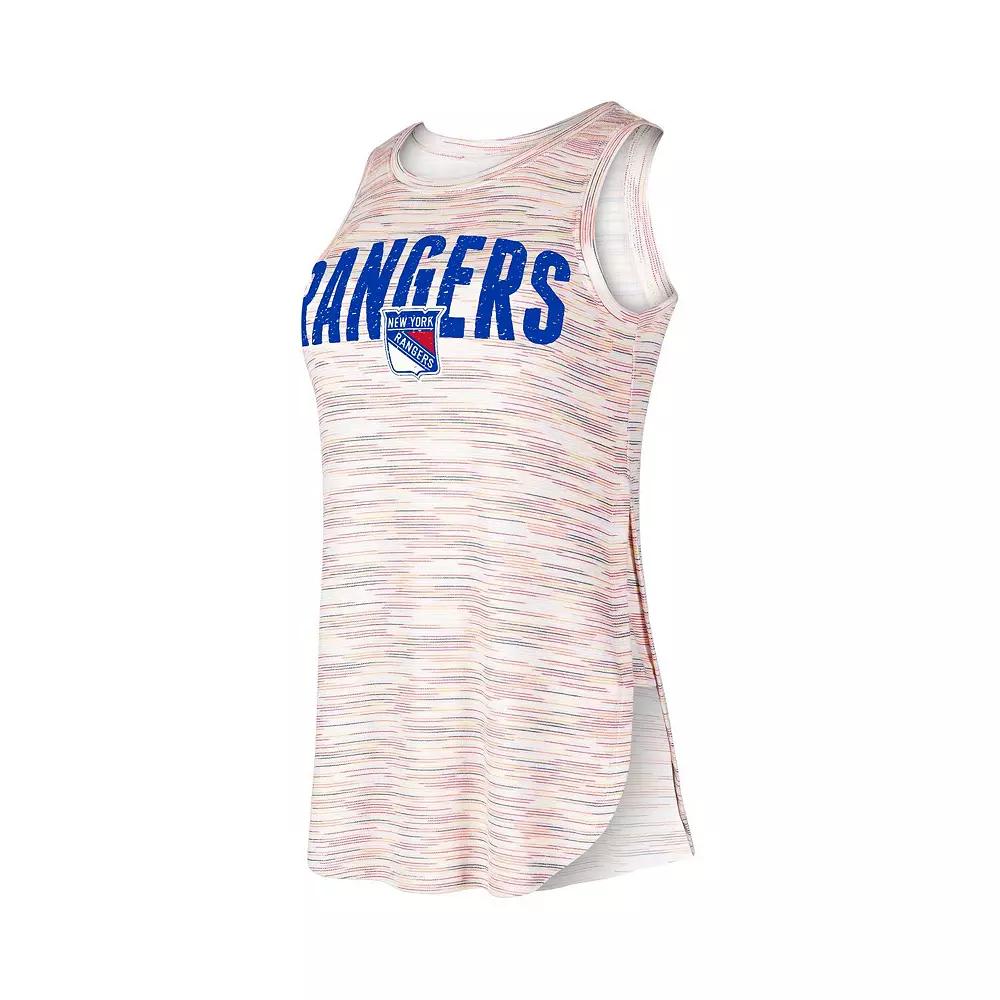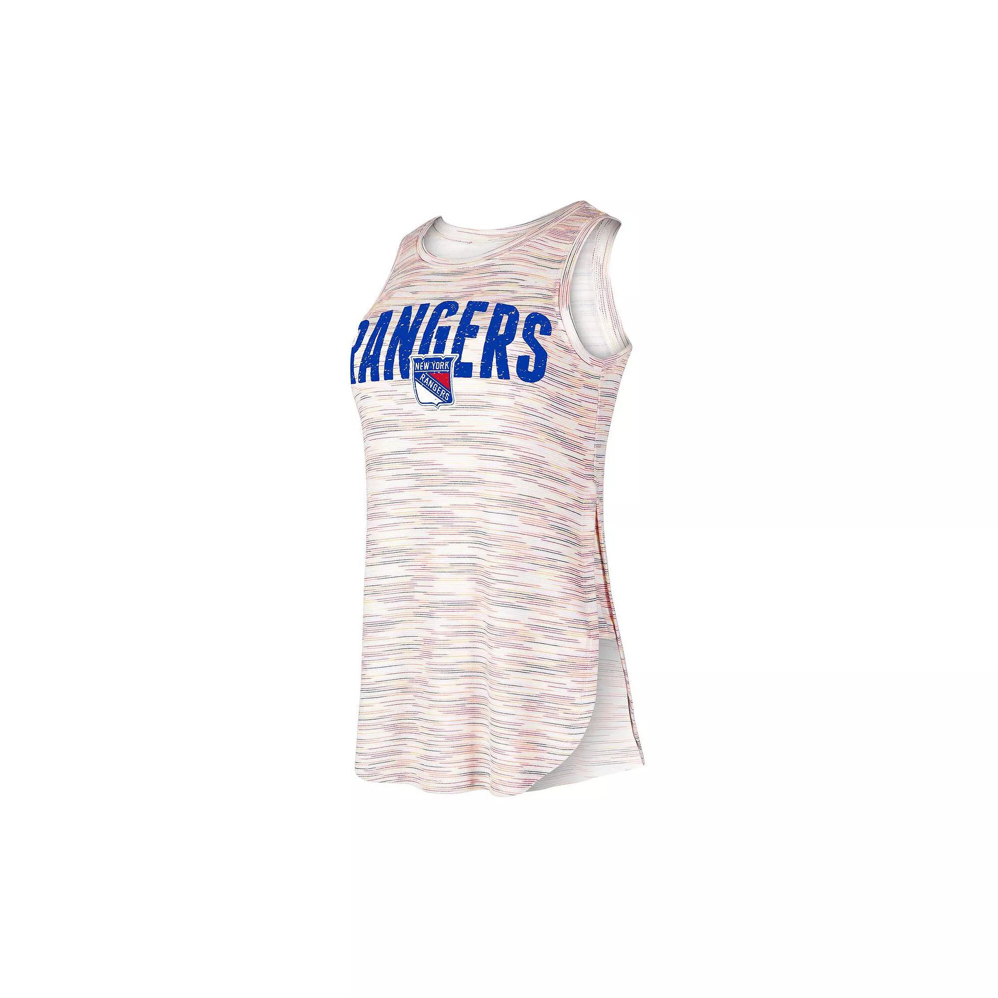 Show off your New York Rangers pride in flattering style with this Concepts Sport Sunray tank top. Offering breathable side inserts and ultra-soft tri-blend material, this is the perfect top to keep you comfortable and refreshed all day long. It features striking New York Rangers graphics in front of a vibrant striped design to elevate your fandom.Show off your New York Rangers pride in flattering style with this Concepts Sport Sunray tank top. Offering breathable side inserts and ultra-soft tri-blend material, this is the perfect top to keep you comfortable and refreshed all day long. It features striking New York Rangers graphics in front of a vibrant striped design to elevate your fandom.PRODUCT FEATURESOfficially licensedSleevelessMachine wash, tumble dry lowDistressed screen print graphicsScreen print designSleevelessBrand: Concepts SportImportedHigh side slits with insets Color: Multicolor. Gender: female. Age Group: adult.