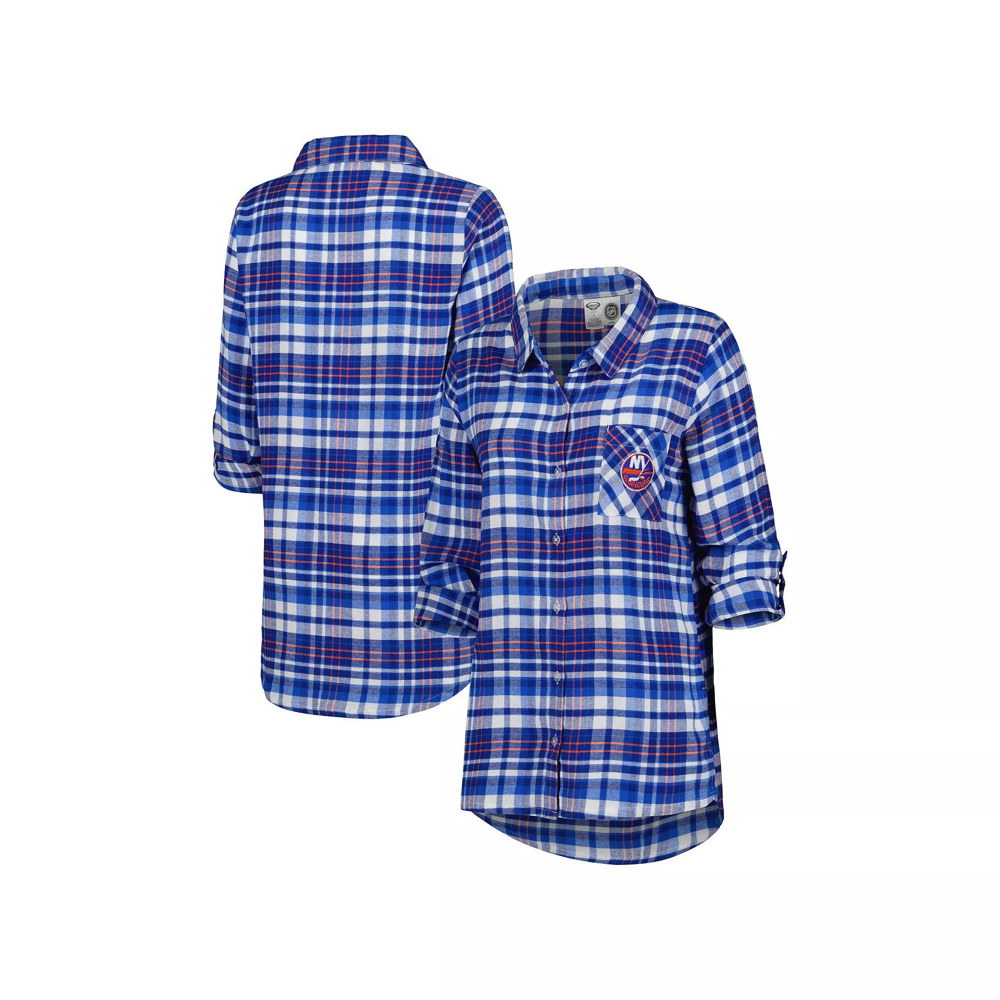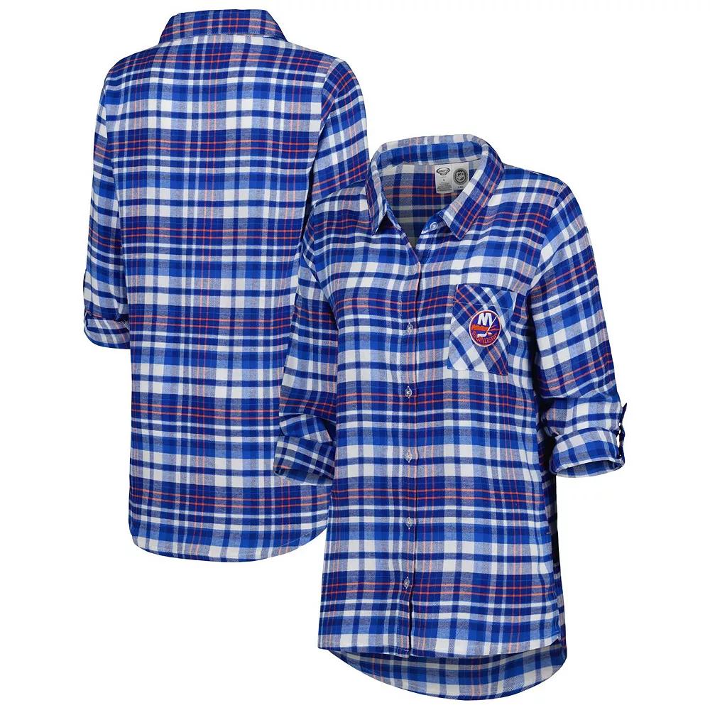 Even when youre dreaming, you can show off your unwavering New York Islanders fandom with this Mainstay Flannel nightshirt from Concepts Sport. It features the team logo embroidered on the chest and a woven plaid pattern comprised of their iconic colors. Pin-up sleeves and soft material make this New York Islanders top great for dozing off in style.
