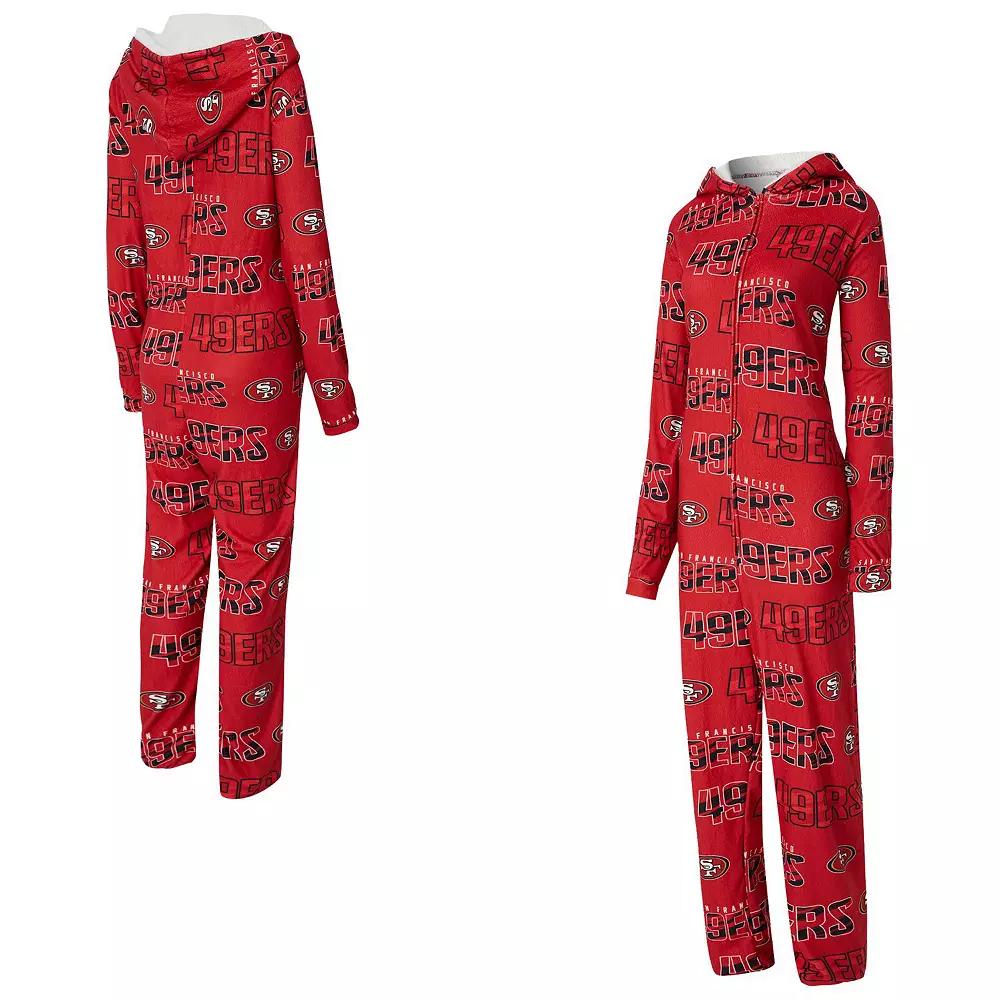 Show off your San Francisco 49ers spirit while staying warm and comfortable with this Roadway Allover Print Microfleece Full-Zip Union Suit from Concepts Sport. Crafted from soft microfleece fabric, this union suit offers unparalleled comfort and warmth, making it perfect for lounging around the house or cheering on the San Francisco 49ers from the couch. The all-over sublimated graphics boldly display your team pride, while the Sherpa-lined hood adds an extra touch of coziness on those chilly game days. Brand: Concepts Sport. All-over, smooth, fully sublimated graphics with no stitching or raised details. Machine wash, tumble dry low. Size S inseam measures approx. 30. Two side pockets. Screen print graphics. Full-zip front. Material: 95% Polyester/5% Spandex - Body; 100% Polyester - Hood Lining. Sherpa lined hood for that extra cozy feel. Imported. Officially licensed. Elastic hem. Long sleeve. Soft, microfleece fabric. Color: Red. Gender: female. Age Group: adult. Material: COTTON.