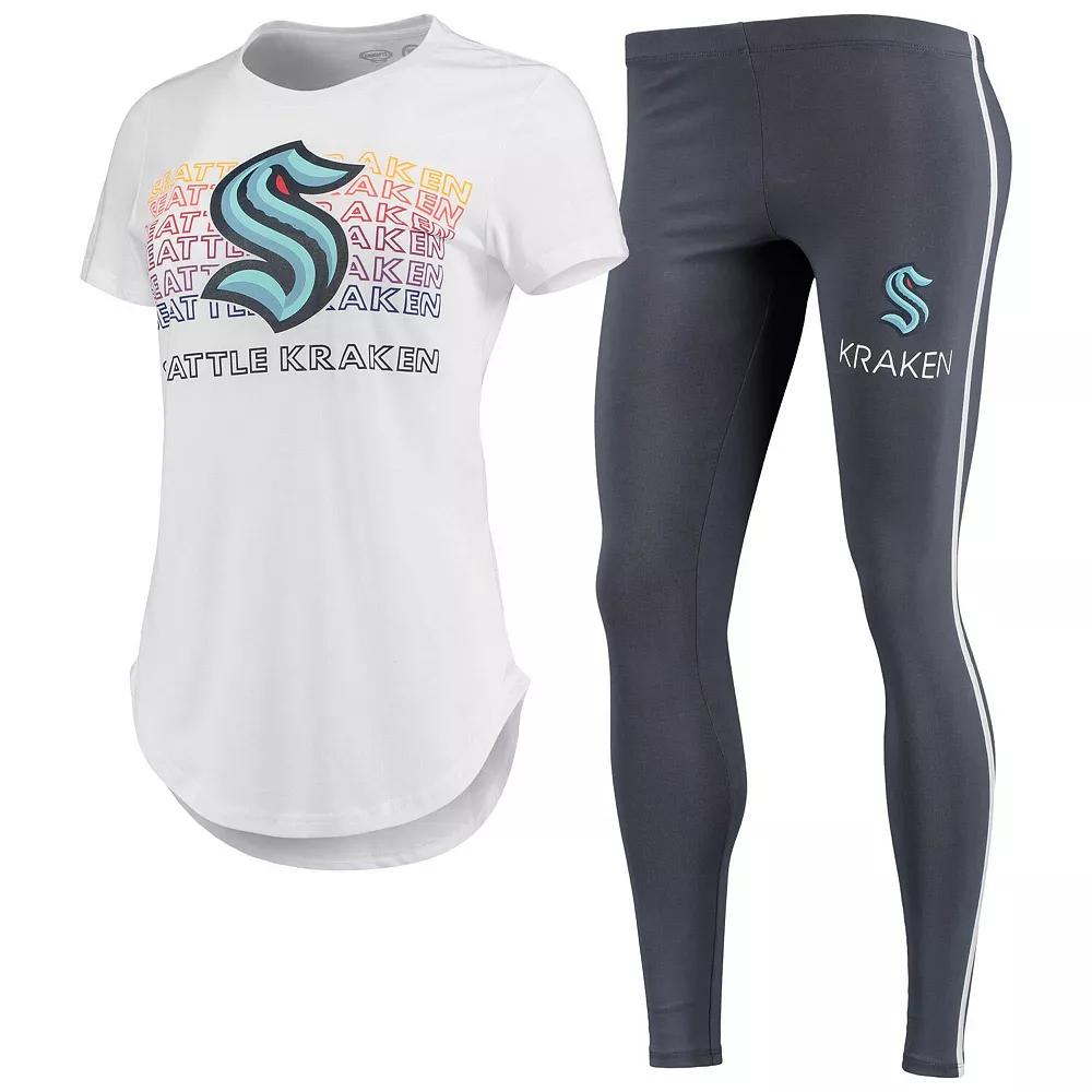 Sometimes you like to cheer on the Seattle Kraken from the comfort of your home, and this Concepts Sport Sonata T-shirt and leggings set makes it that much easier. This set features a cozy tee, bottoms with sleek graphics and team colors for a full squad look. The elastic waistband provides the perfect fit as you cheer on your Seattle Kraken.