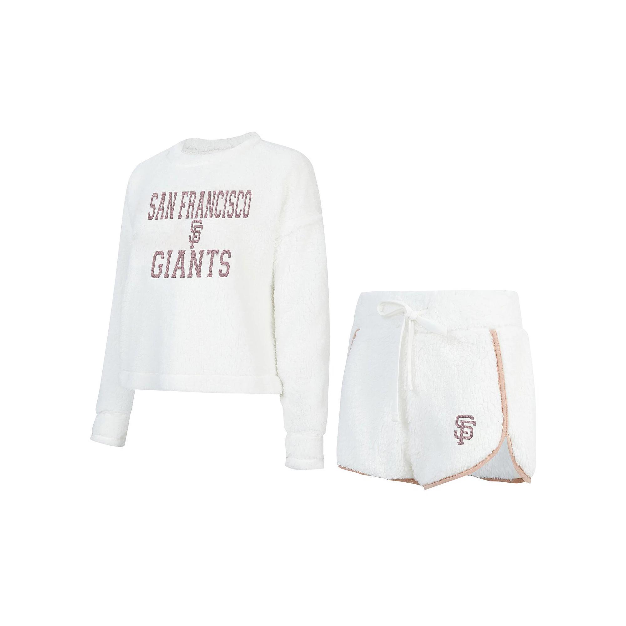 Channel your inner artist and show off your San Francisco Giants spirit with the Concepts Sport Painter Sherpa Long Sleeve T-Shirt & Shorts Set. This San Francisco Giants sleep set is crafted from ultra-soft sherpa for ultimate comfort, making those relaxing days and nights even cozier. The embroidered team name and logo on the top and shorts let you represent the team in style, while the contrast-color trim on the shorts adds a touch of sporty flair.Channel your inner artist and show off your San Francisco Giants spirit with the Concepts Sport Painter Sherpa Long Sleeve T-Shirt & Shorts Set. This San Francisco Giants sleep set is crafted from ultra-soft sherpa for ultimate comfort, making those relaxing days and nights even cozier. The embroidered team name and logo on the top and shorts let you represent the team in style, while the contrast-color trim on the shorts adds a touch of sporty flair.PRODUCT FEATURESImportedDrawstring in waistband for a customizable fitSide splits at hem on shortsContrast-color trim on shortsMaterial: 100% PolyesterTwo piece set includes one long sleeve top and one pair of shortsCrew neck provides a traditional look and is comfortable to wear all dayLong sleeveCropped hem hits at the waistOfficially licensedEmbroidered team name and logo stacked on front and on left leg of shortsBrand: Concepts Sport Size: 2X. Color: White. Gender: female. Age Group: adult.