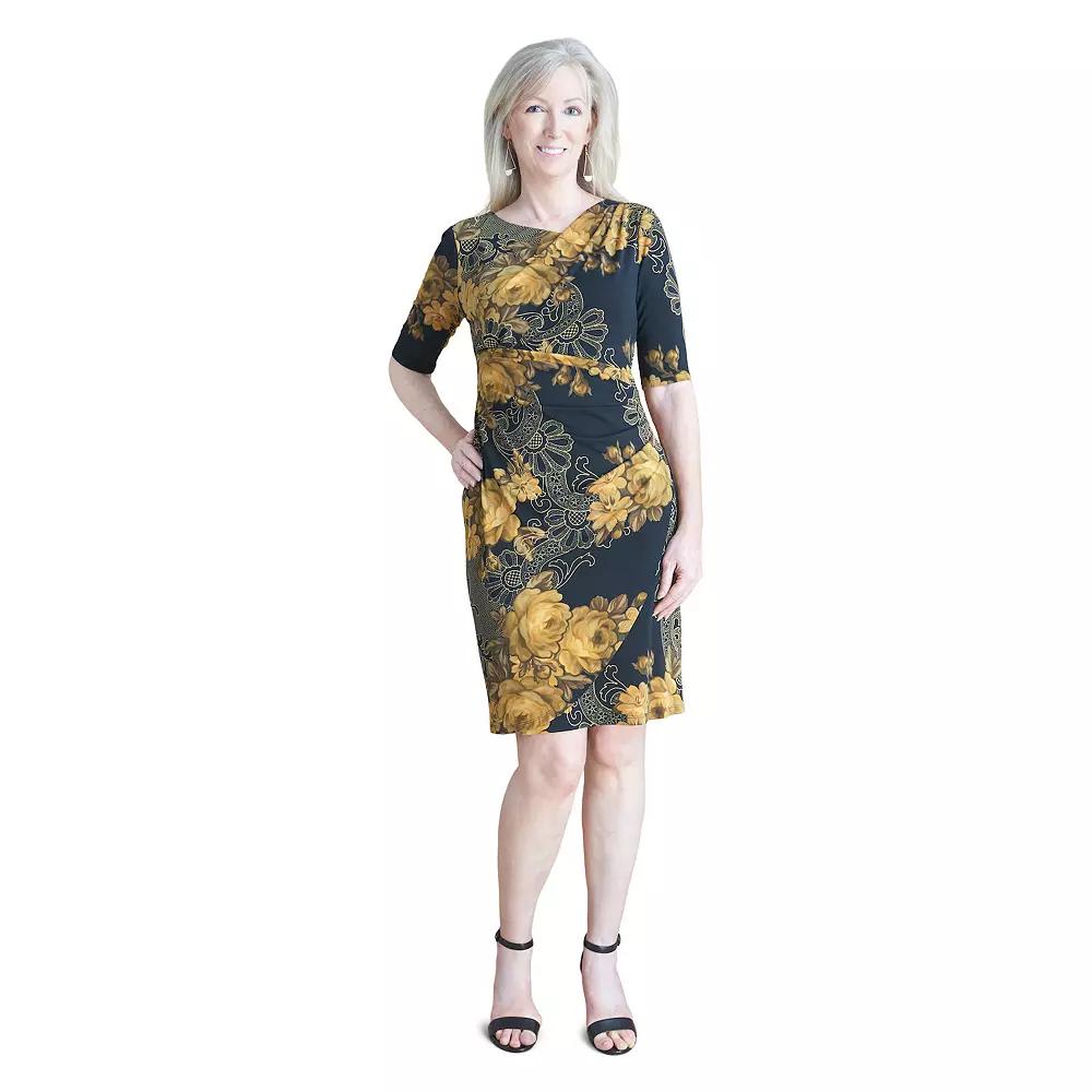 Step out in style with this womens Connected Apparel asymmetrical neckline A-line dress.Click on this WOMENS GUIDE to find the perfect fit and more! Step out in style with this womens Connected Apparel asymmetrical neckline A-line dress. Click on this WOMENS GUIDE to find the perfect fit and more! FEATURES Asymmetrical neckline Elbow sleeves Ruched waist A-line silhouette Knit construction No closure - pullover styling Partially linedFIT & SIZING 40-in. length from shoulder to hem Mini length hits at the thighFABRIC & CARE Polyester, spandex Polyester lining Machine wash and tumble dry low Imported Size: 6. Color: Drk Yellow. Gender: female. Age Group: adult.