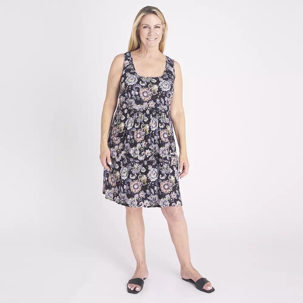 No matter the occasion, arrive in style with this floral womens fit & flare dress from Connected Apparel. No matter the occasion, arrive in style with this floral womens fit & flare dress from Connected Apparel. Boatneck Sleeveless Challis construction 2 side pockets UnlinedFIT & SIZING 38-in. length from shoulder to hem Ruched detailing at waistband Pull-on designFABRIC & CARE Rayon Machine wash Imported Size: 10. Color: Purple. Gender: female. Age Group: adult.