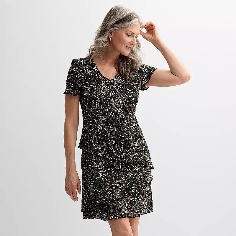 Youll love the bold style of this Short Sleeve Tiered Mini Dress from Connected Apparel.Click on this WOMENS GUIDE to find the perfect fit and more! Youll love the bold style of this Short Sleeve Tiered Mini Dress from Connected Apparel.Click on this WOMENS GUIDE to find the perfect fit and more! FEATURES Sheath silhouette V-neck Short sleeves No closure - pullover styling Tiered skirt UnlinedFIT & SIZING Regular fit 38 1/2-in. length from shoulder to hem,39-in. length Midi length hits below the kneeFABRIC & CARE Polyester Machine wash and tumble dry low Imported Size: 6. Color: Hunter. Gender: female. Age Group: adult.
