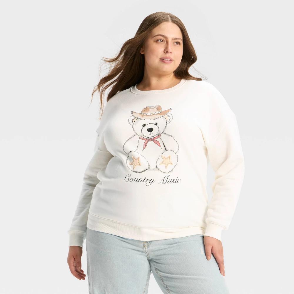 Women's Country Music Teddy Bear Graphic Sweatshirt - White
