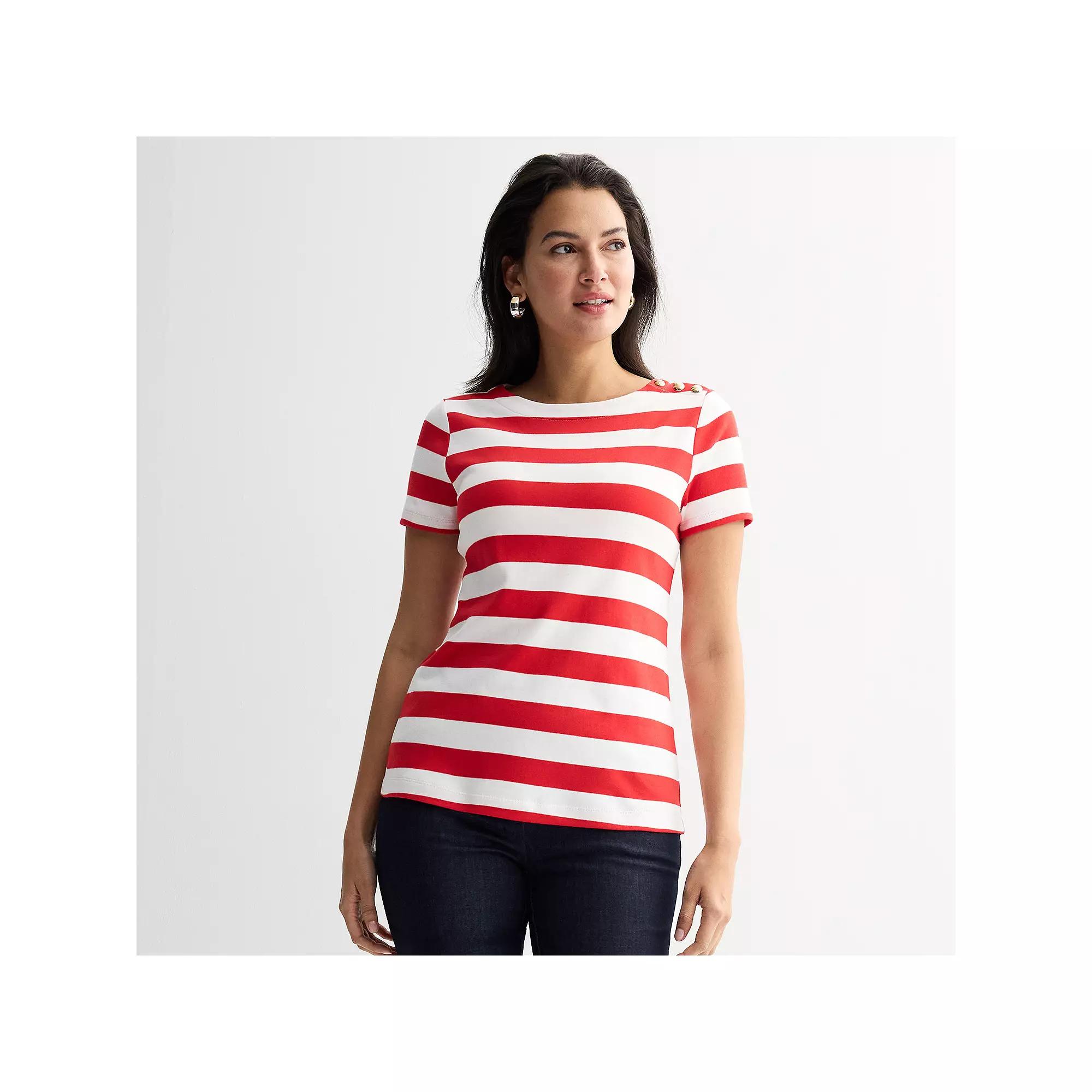 Elevate your everyday style with this chic button shoulder tee from Croft & Barrow. With its flattering fit and versatile neckline, this top effortlessly pairs with jeans or skirts, making it a perfect choice for casual outings or layered under a cozy cardigan on cooler days.Click on this WOMENS GUIDE to find the perfect fit and more!FEATURES Crewneck Short sleeves Set-in sleeves Sewn-rolled cuffs Rounded hem Pullover stylingFIT & SIZING Comfortable fit 26-in. length from shoulder to hemFABRIC & CARE Cotton Machine wash ImportedRESPONSIBLE Tested for harmful substances STANDARD 100 by OEKO-TEX CERTIFIED Certification No. SE020 176543 TESTEX Testing Institute: Testex AG: Swiss Textile Testing Institute www.oeko-tex.com/standard100 Supports more sustainable cotton farming Size: Large. Color: Navy Dainty Floral. Gender: female. Age Group: adult.