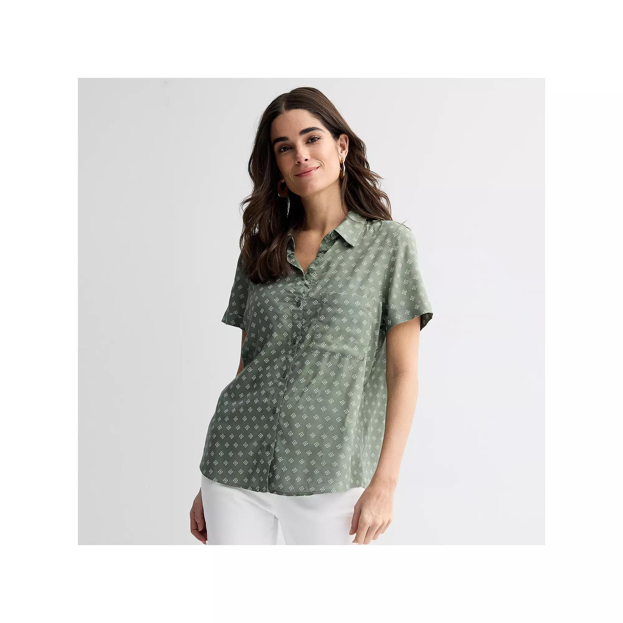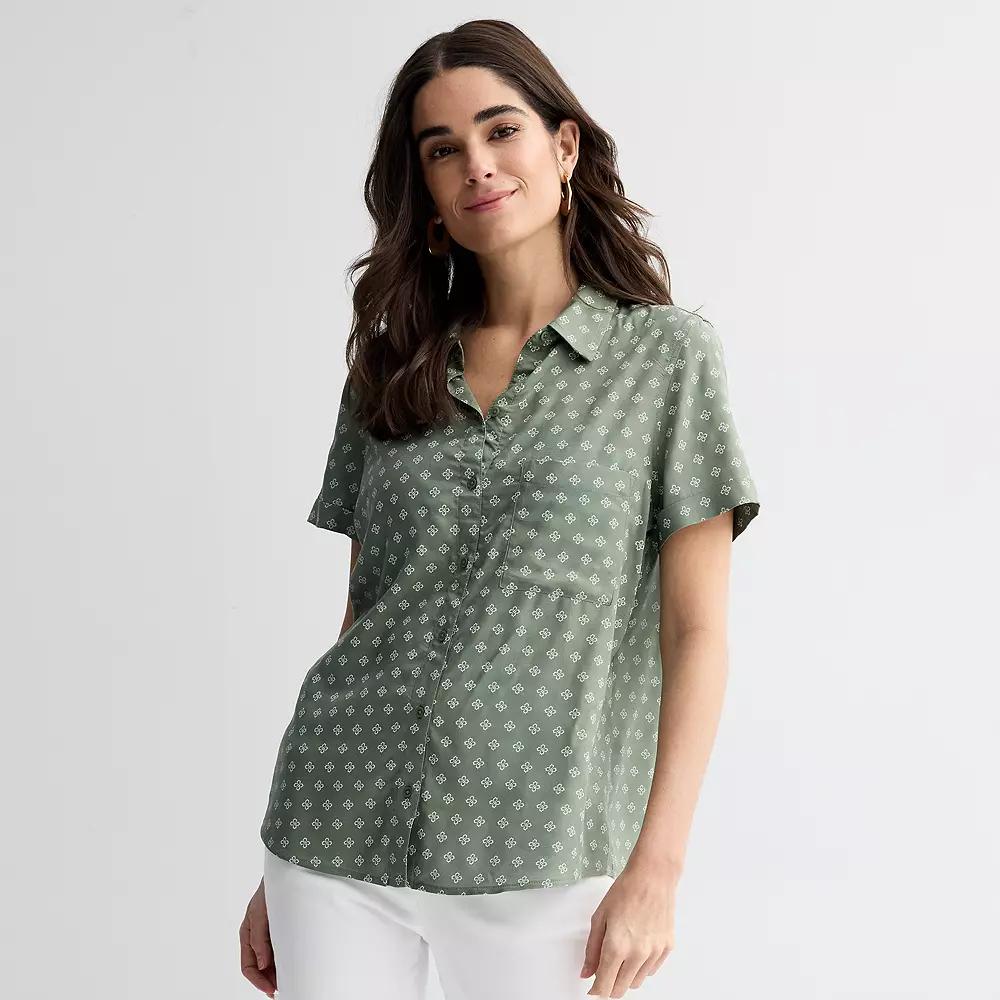 Refresh your wardrobe with this womens camp shirt from Croft & Barrow. Finding the perfect fit and size for womens clothing requires basic measurements of your chest, waist, hips and inseam. Use this guide to learn more about sizing and everything Kohls has to offer in womens fashion. Refresh your wardrobe with this womens camp shirt from Croft & Barrow. Finding the perfect fit and size for womens clothing requires basic measurements of your chest, waist, hips and inseam. Use this guide to learn more about sizing and everything Kohls has to offer in womens fashion. FEATURES Woven challis construction Chest pocket Rounded hem Button front Rounded cuffs Short sleeves Collared necklineFIT & SIZING 27 1/2-in. length from shoulder to hemFABRIC & CARE Rayon Machine wash Imported Size: Medium. Color: White. Gender: female. Age Group: adult.