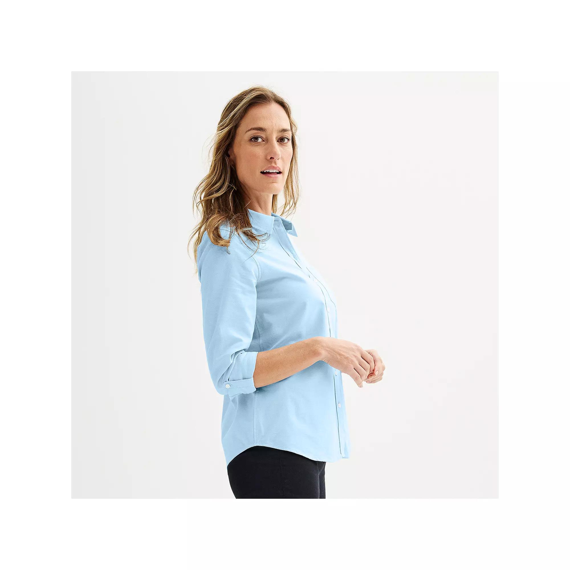 A relaxed fit and lightweight cotton construction makes this women's Croft & Barrow shirt a casual essential.Click on this WOMEN'S GUIDE to find the perfect fit and more!A relaxed fit and lightweight cotton construction makes this women's Croft & Barrow shirt a casual essential.Click on this WOMEN'S GUIDE to find the perfect fit and more!PRODUCT FEATURES Classic print Button front Roll-tab long sleeves Poplin construction 2 chest pocketsFIT & SIZING Loose, relaxed fitFABRIC & CARE Cotton Machine wash Imported Size: X Small. Color: Secret Peri. Gender: female. Age Group: adult.