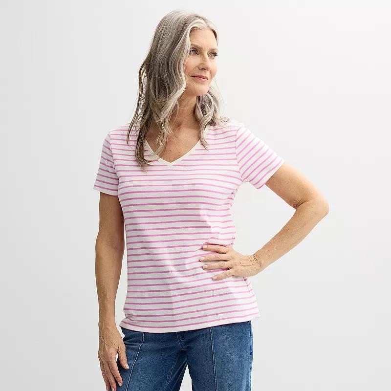 A casual classic. Extra soft, you'll reach for this women's Croft & Barrow v-neck tee again and again.Click on this WOMEN'S GUIDE to find the perfect fit and more! Extra soft cotton construction V-neck Short sleevesFABRIC & CARE Solids & prints: cotton Space-dyed & heathered colors: cotton, polyester Machine wash Imported Size: Large. Color: Pink Clean Stripe. Gender: female. Age Group: adult.