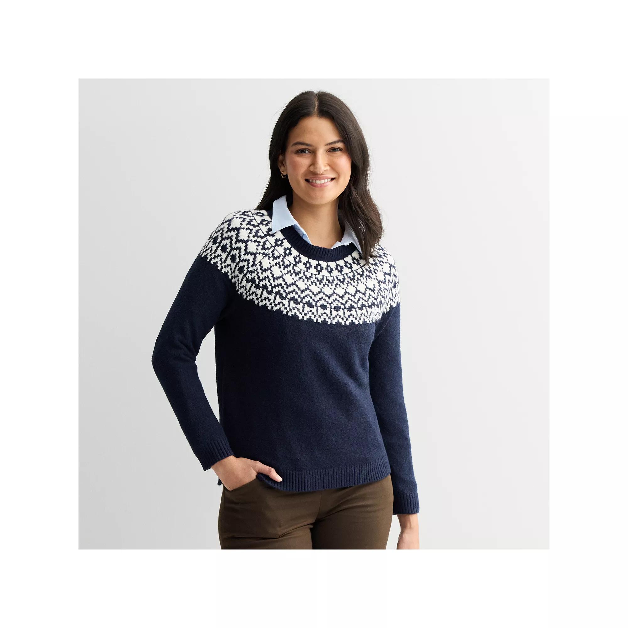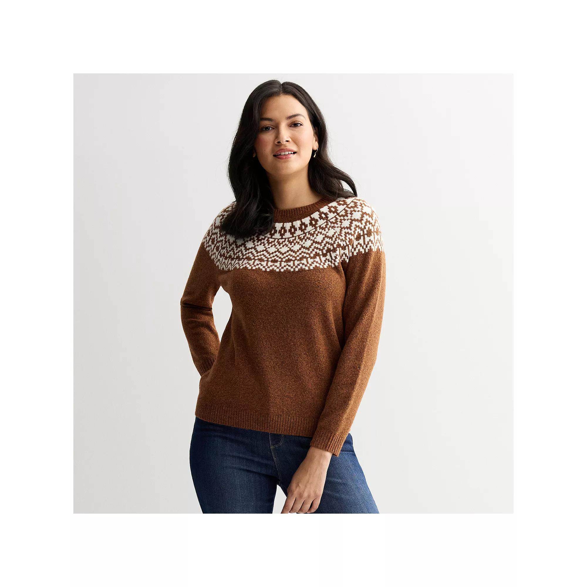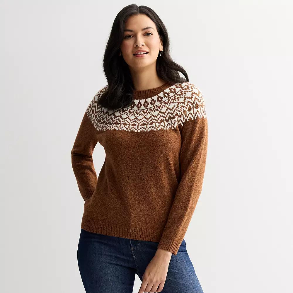 Embrace cozy elegance with this stunning pullover from Croft & Barrow, featuring a captivating geo Fair Isle pattern that instantly elevates your look. The close-fitting design and soft hand feel make it the perfect choice for layering on a chilly day or dressing up for a casual outing, ensuring you stay stylish and comfortable all season long. Click on this WOMEN'S GUIDE to find the perfect fit and more! - https://www.kohls.com/feature/womens-fit-guide.jsp. FEATURES: Jersey and ladder back jacquard construction, Crewneck, Long raglan sleeves, Ribbed cuffs, Straight hem, Unlined. FIT & SIZING: Close-fitting, 25-in. length from shoulder to hem, Midweight sweater: Balanced weight with everyday versatility, designed to style effortlessly, season to season. FABRIC & CARE: 50% recycled polyester, 29% polyester, 17% nylon, 4% spandex, Machine wash and tumble dry low, Imported. RESPONSIBLE Contains recycled polyester. Size: Large. Color: Rust Geo Fairisle. Gender: female. Age Group: adult. Material: OTHER MATERIAL.