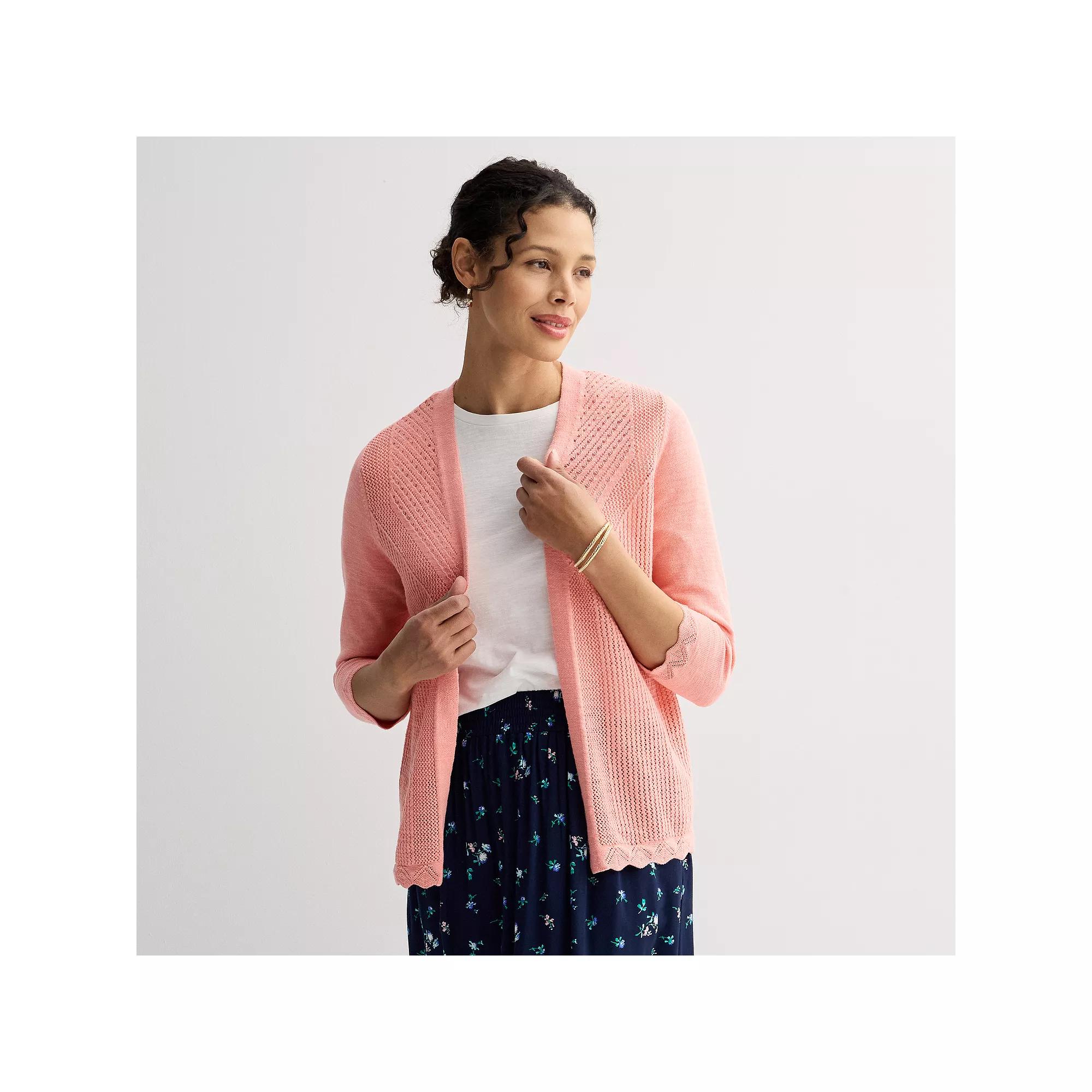 This women's pointelle knit open-front cardigan from Croft & Barrow is sure to become an instant fashion staple in your wardrobe.Click on this WOMEN'S GUIDE to find the perfect fit and more!This women's pointelle knit open-front cardigan from Croft & Barrow is sure to become an instant fashion staple in your wardrobe.Click on this WOMEN'S GUIDE to find the perfect fit and more!FEATURES No closure - open front Long, set-in sleeves Soft pointelle jersey knit construction UnlinedFIT & SIZING Casual fit with slight ease in body 25 3/4-in. length from shoulder to hemFABRIC & CARE Cotton, rayon, nylon Machine wash ImportedRESPONSIBLE Supports more sustainable cotton farming Size: Xxl. Color: Smo Peach. Gender: female. Age Group: adult.
