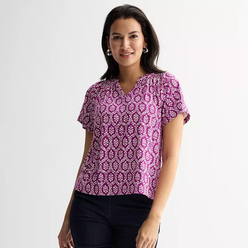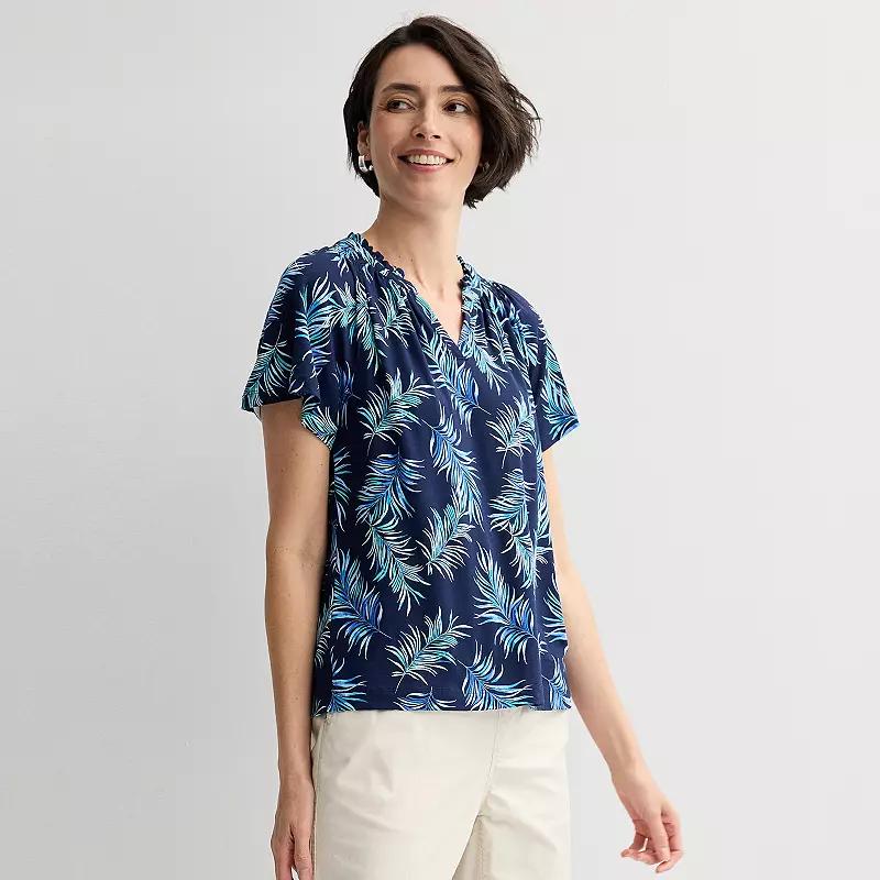 This ultra-soft womens Croft & Barrow smocked raglan top is made to go wherever your day takes you. Click on this WOMENS GUIDE to find the perfect fit and more!This ultra-soft womens Croft & Barrow smocked raglan top is made to go wherever your day takes you. Click on this WOMENS GUIDE to find the perfect fit and more!FEATURES Splitneck Raglan cap sleeves Rounded hem Pullover stylingFIT & SIZING Regular fit 25-in. length from shoulder to hemFABRIC & CARE Rayon, spandex Machine wash Imported Size: X Small. Color: Navy Crafted Garden. Gender: female. Age Group: adult.