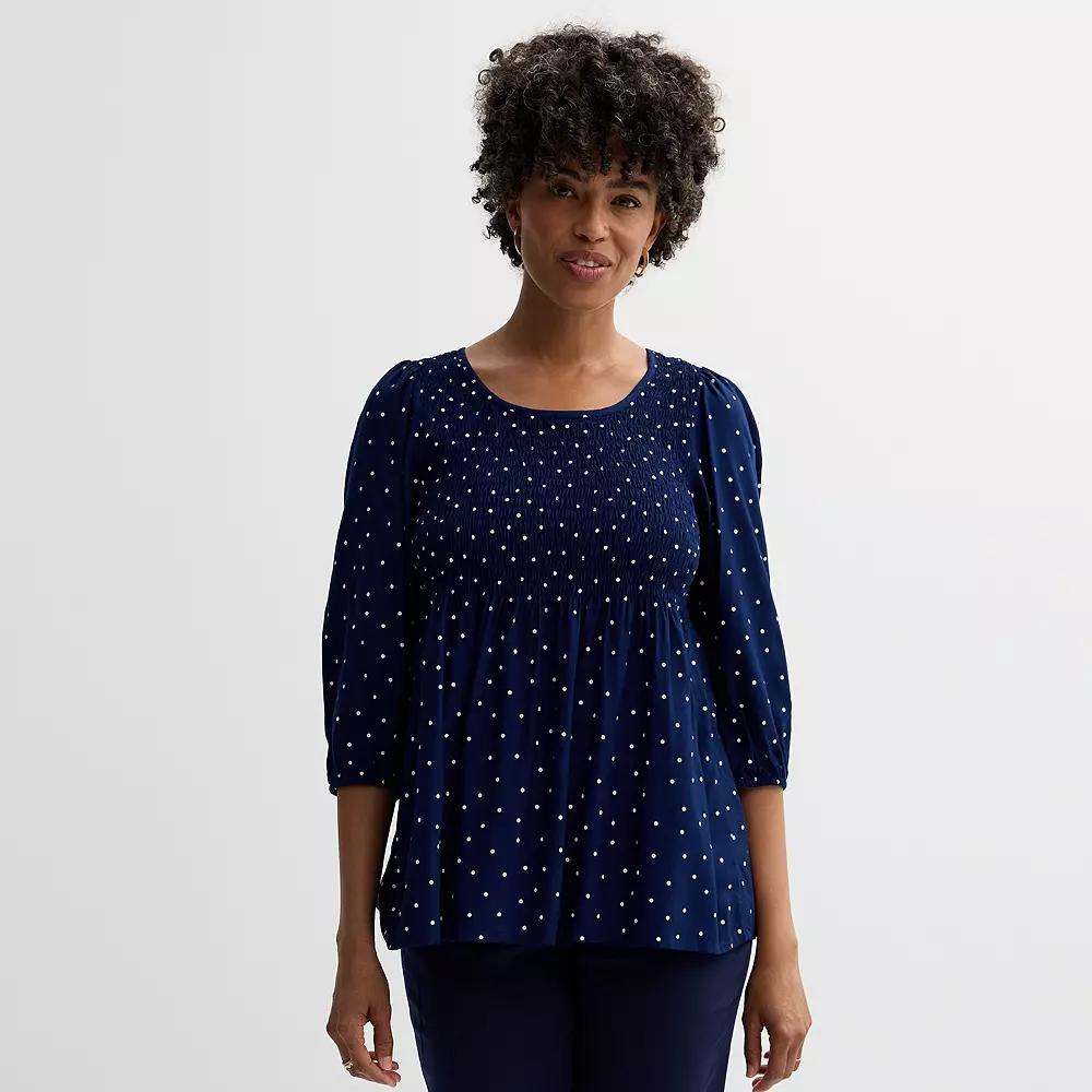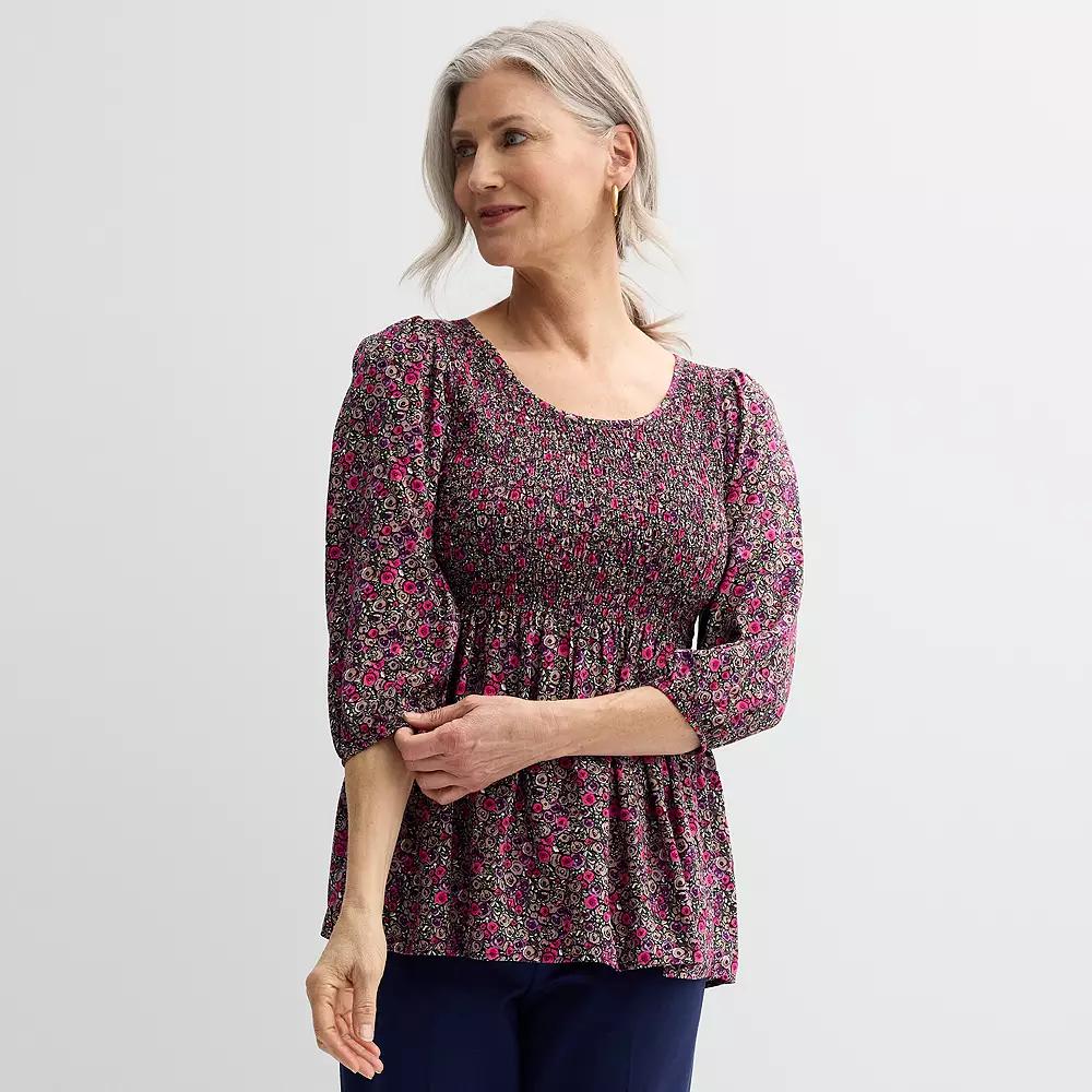 Update your wardrobe with this fashionable womens three-quarter sleeve smocked blouse from Croft & Barrow.Click on this WOMENS GUIDE to find the perfect fit and more! Update your wardrobe with this fashionable womens three-quarter sleeve smocked blouse from Croft & Barrow. Click on this WOMENS GUIDE to find the perfect fit and more! FEATURES Crewneck Three-quarter length sleeves with elastic cuffs Rounded hem Smocked fabric construction UnlinedFIT & SIZING 27.75-in. length from shoulder to hemFABRIC & CARE Rayon Machine wash Imported Size: X Small. Color: Turq/Aqua. Gender: female. Age Group: adult.
