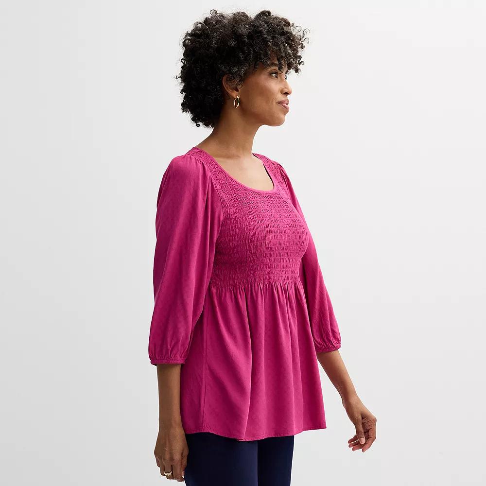 Update your wardrobe with this fashionable womens three-quarter sleeve smocked blouse from Croft & Barrow.Click on this WOMENS GUIDE to find the perfect fit and more! Update your wardrobe with this fashionable womens three-quarter sleeve smocked blouse from Croft & Barrow. Click on this WOMENS GUIDE to find the perfect fit and more! FEATURES Crewneck Three-quarter length sleeves with elastic cuffs Rounded hem Smocked fabric construction UnlinedFIT & SIZING 27.75-in. length from shoulder to hemFABRIC & CARE Rayon Machine wash Imported Size: Large. Color: Dark Pink. Gender: female. Age Group: adult.