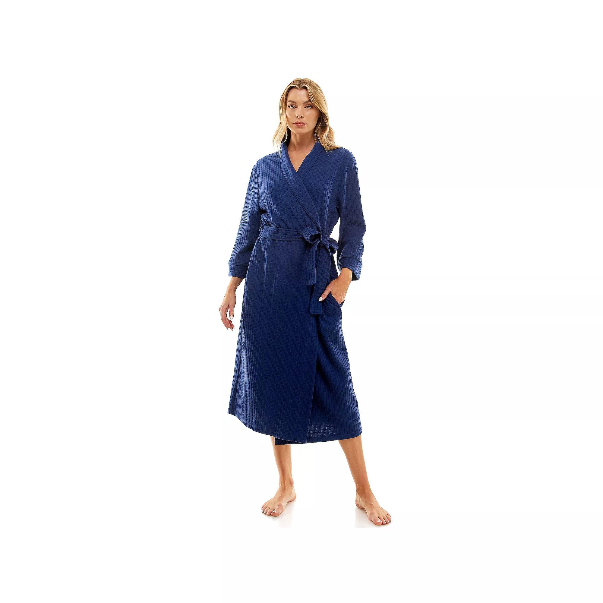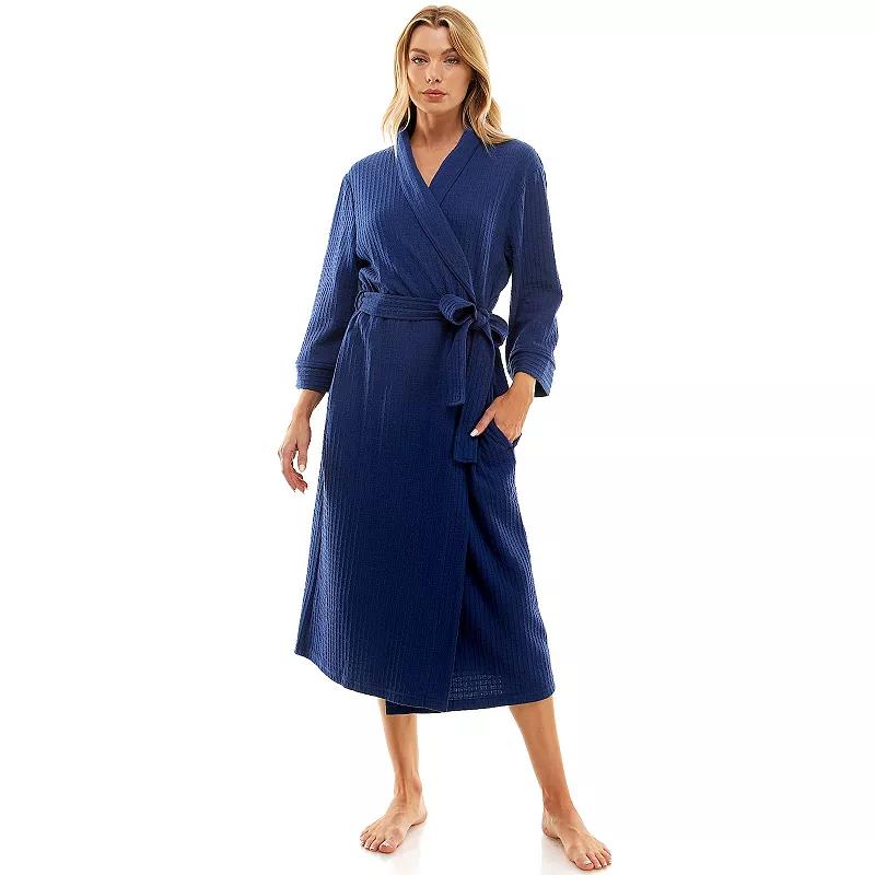 Featuring a soft waffle-knit design, this womens Croft & Barrow robe is sure to become a sleepwear favorite. Featuring a soft waffle-knit design, this womens Croft & Barrow robe is sure to become a sleepwear favorite. FEATURES Waffle knit soft hand feel 2-pocket Unlined Open-front design with tie closure Shawl collar 3/4-length sleevesFIT & SIZING 48-in. length from shoulder to hem Relaxed fitFABRIC & CARE Cotton, polyester Machine wash and tumble dry low ImportedSUSTAINABILITY FEATURES Supports more sustainable cotton farming Size: Small. Color: Blue. Gender: female. Age Group: adult.