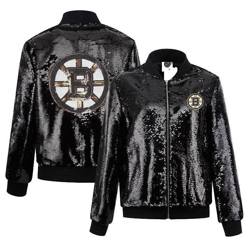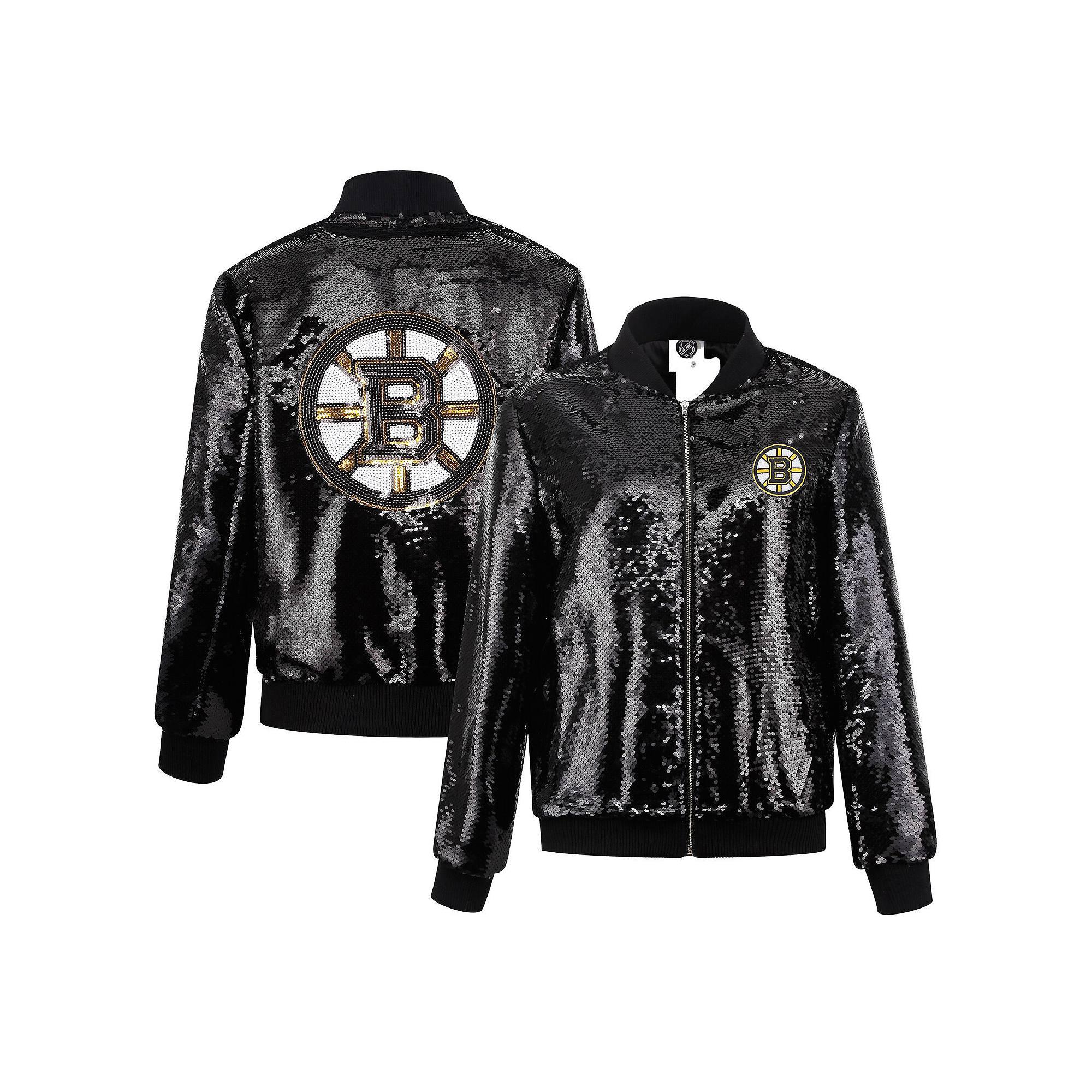Stay warm and rep your Boston Bruins with this Cuce Sequin Full-Zip Jacket. This stylish jacket features a stand-up collar, rib-knit accents, and two convenient waist pockets. The embroidered team logo on the chest and a large sequin logo on the back make a dazzling statement of Bruins pride.Stay warm and rep your Boston Bruins with this Cuce Sequin Full-Zip Jacket. This stylish jacket features a stand-up collar, rib-knit accents, and two convenient waist pockets. The embroidered team logo on the chest and a large sequin logo on the back make a dazzling statement of Bruins pride.PRODUCT FEATURESMachine wash with garment inside out, tumble dry lowTwo inside pocketsMaterial: 100% PolyesterImportedTwo outside pocketsFull ZipLarge sequin team logo on backEmbroidered team logo at left chestLong sleeveStand up collarLightweight jacket suitable for mild temperaturesRib-knit collar, cuffs and hemOfficially licensedBrand: Cuce Color: Black. Gender: female. Age Group: adult. Material: Cotton.