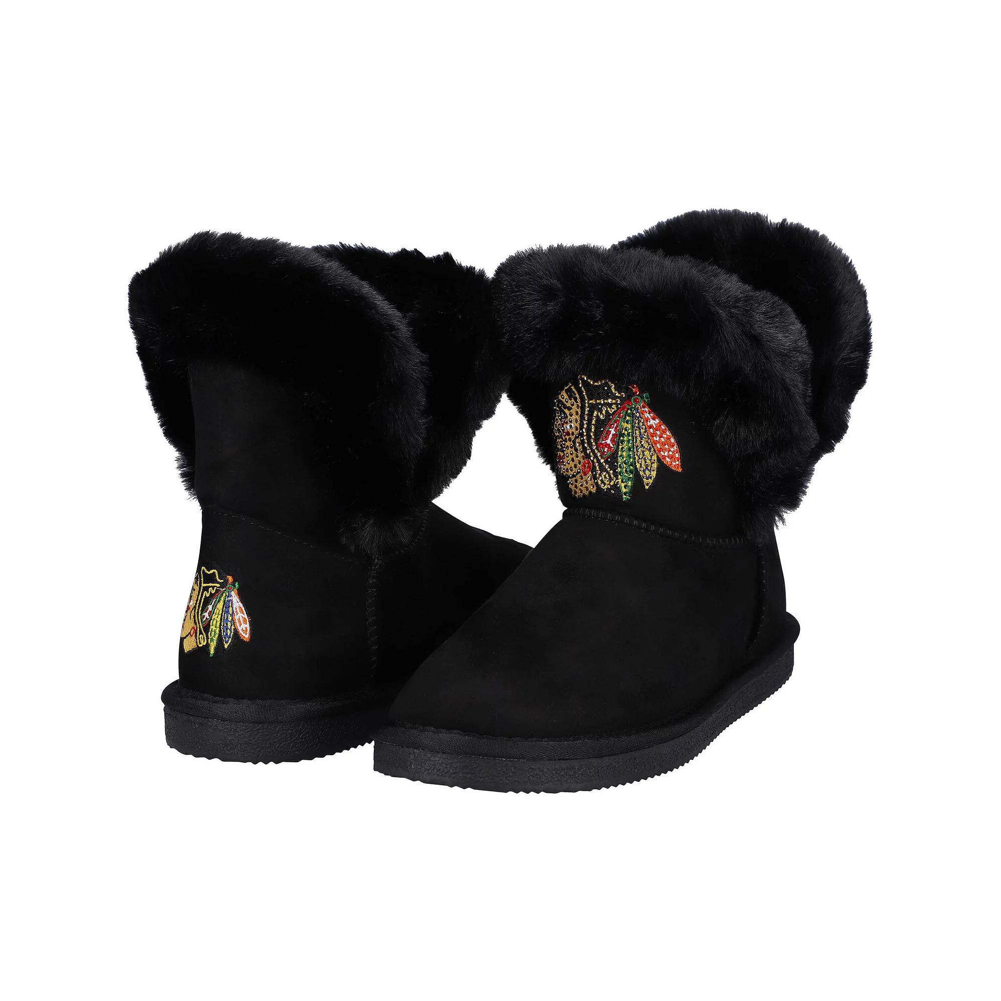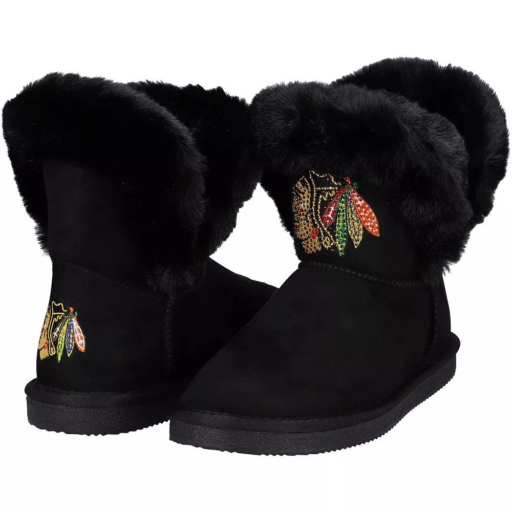 With these boots from Cuce, you can show off your Chicago Blackhawks spirit with every step you take. Designed with embroidered graphics complete with rhinestone embellishments, these boots help you flaunt your fandom from head to toe. The faux fur lining keeps your feet warm and cozy as you cheer on the Chicago Blackhawks.With these boots from Cuce, you can show off your Chicago Blackhawks spirit with every step you take. Designed with embroidered graphics complete with rhinestone embellishments, these boots help you flaunt your fandom from head to toe. The faux fur lining keeps your feet warm and cozy as you cheer on the Chicago Blackhawks.Brand: CuceDurable, textured rubber soleEmbroidered graphics with rhinestone accentsFaux fur liningImportedMaterial: 100% Synthetic Suede Upper; 100% Faux Fur lining; 100% Textured Rubber SoleOfficially licensedSlip-on bootsSurface washable Size: 6. Gender: female. Age Group: adult.