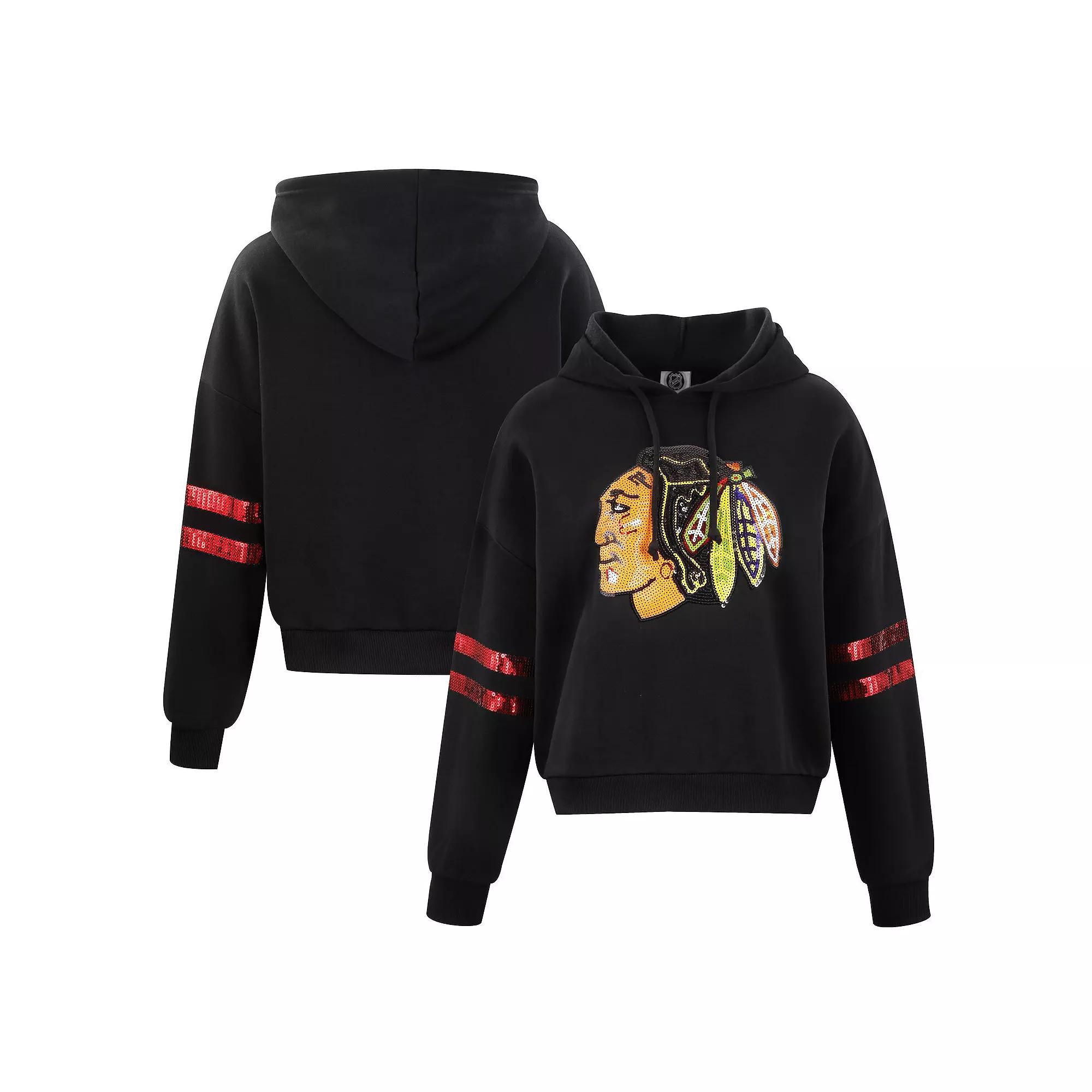 Add some sparkle and showcase your Chicago Blackhawks pride with this Cuce Sequin Cropped Hoodie. This stylish pullover features a sequin team logo at the center chest and shimmering sleeve stripes, adding a touch of glam to your game-day look. The cropped hem and rib-knit cuffs and hem provide a flattering and comfortable fit, making it perfect for cheering on the Chicago Blackhawks.Add some sparkle and showcase your Chicago Blackhawks pride with this Cuce Sequin Cropped Hoodie. This stylish pullover features a sequin team logo at the center chest and shimmering sleeve stripes, adding a touch of glam to your game-day look. The cropped hem and rib-knit cuffs and hem provide a flattering and comfortable fit, making it perfect for cheering on the Chicago Blackhawks.PRODUCT FEATURESMaterial: 60% Cotton/40% PolyesterRib-knit cuffs and hemOfficially licensedHoodedMachine wash, tumble dry lowImportedLightweight hoodie suitable for mild temperaturesCropped hemPulloverLong sleeveSequin team logo at center chest and sleeve stripesHood with drawstringBrand: Cuce Gender: female. Age Group: adult.