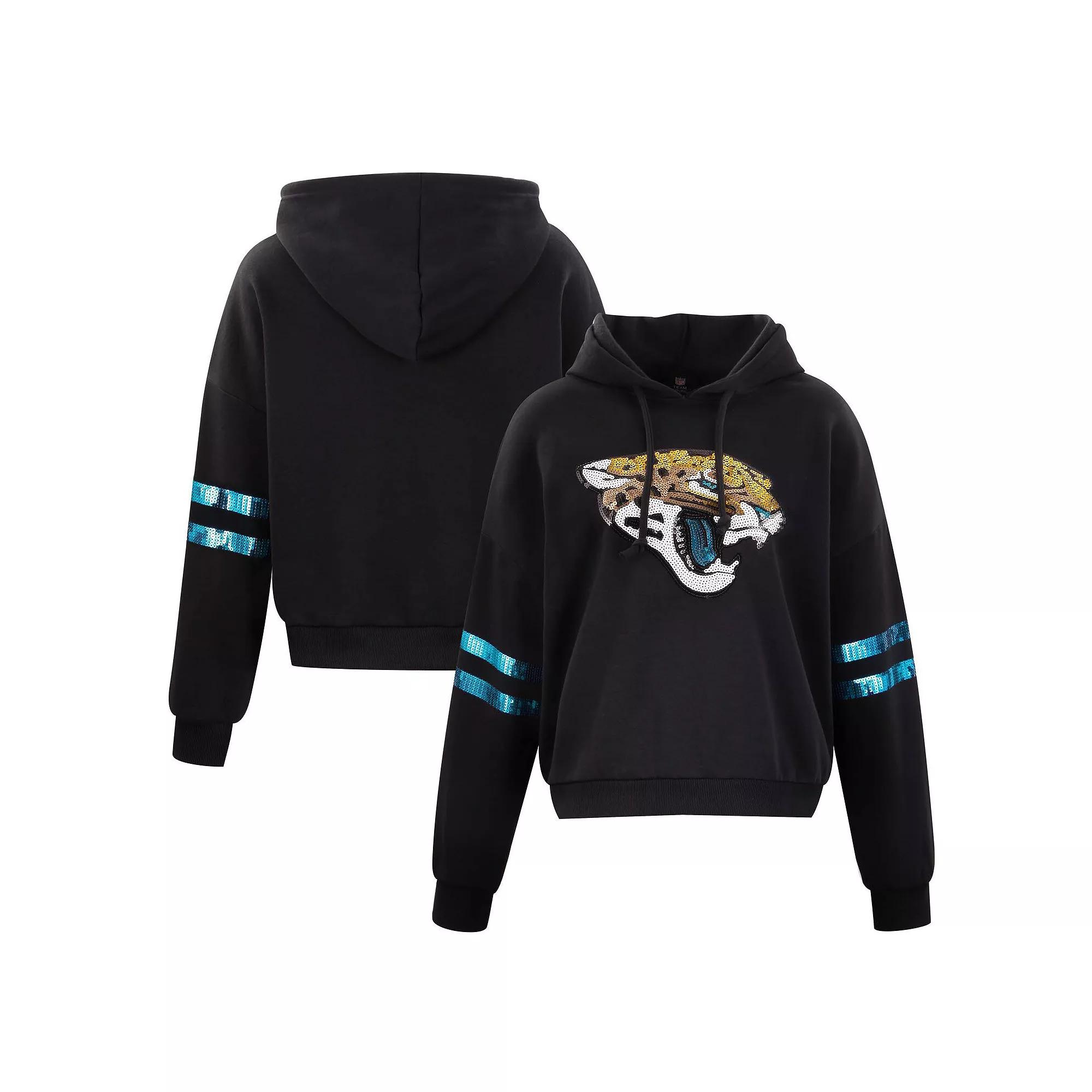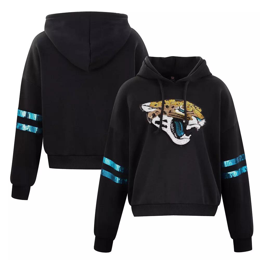 Add some sparkle to your Jacksonville Jaguars game day look with this Cuce Cropped Sequins Pullover Hoodie. This stylish hoodie features sparkling sequin stripes on the sleeves and a large sequin team logo on the front for a dazzling display of Jacksonville Jaguars spirit. The cropped hem adds a modern touch, while the fleece lining provides an extra layer of warmth for those cooler game days.Add some sparkle to your Jacksonville Jaguars game day look with this Cuce Cropped Sequins Pullover Hoodie. This stylish hoodie features sparkling sequin stripes on the sleeves and a large sequin team logo on the front for a dazzling display of Jacksonville Jaguars spirit. The cropped hem adds a modern touch, while the fleece lining provides an extra layer of warmth for those cooler game days.PRODUCT FEATURESDropped shoulders for a loose, relaxed, boxy fitPulloverOfficially licensedSleeves with sequin stripesHoodedHand wash, line dryMaterial: 60% Cotton/40% PolyesterCropped hem adds a stylish and modern aestheticFront with large sequin team logoBrand: CuceLong sleeveImportedFleece lining for an extra layer of warmthMidweight hoodie suitable for moderate temperatures Size: XL. Color: Black. Gender: female. Age Group: adult.