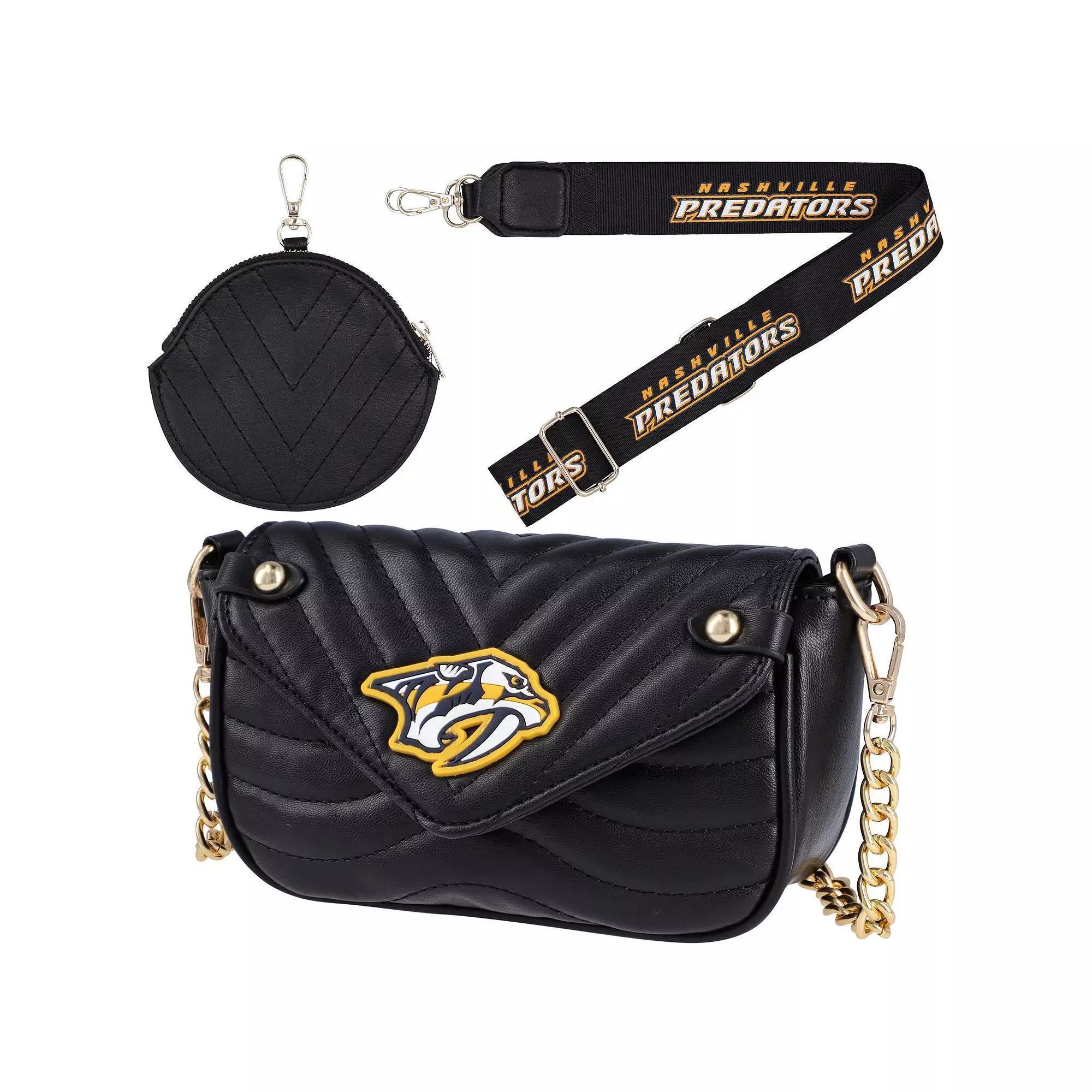 Whether you're headed to the game or going out for a night on the town, keep your essentials close with this Nashville Predators Vegan Leather strap bag from Cuce. The detachable change purse has a zippered closure, while the main compartment is secured by a magnetic closure. Plus, the adjustable nylon strap allows you to show off the bag's Nashville Predators applique in stride.