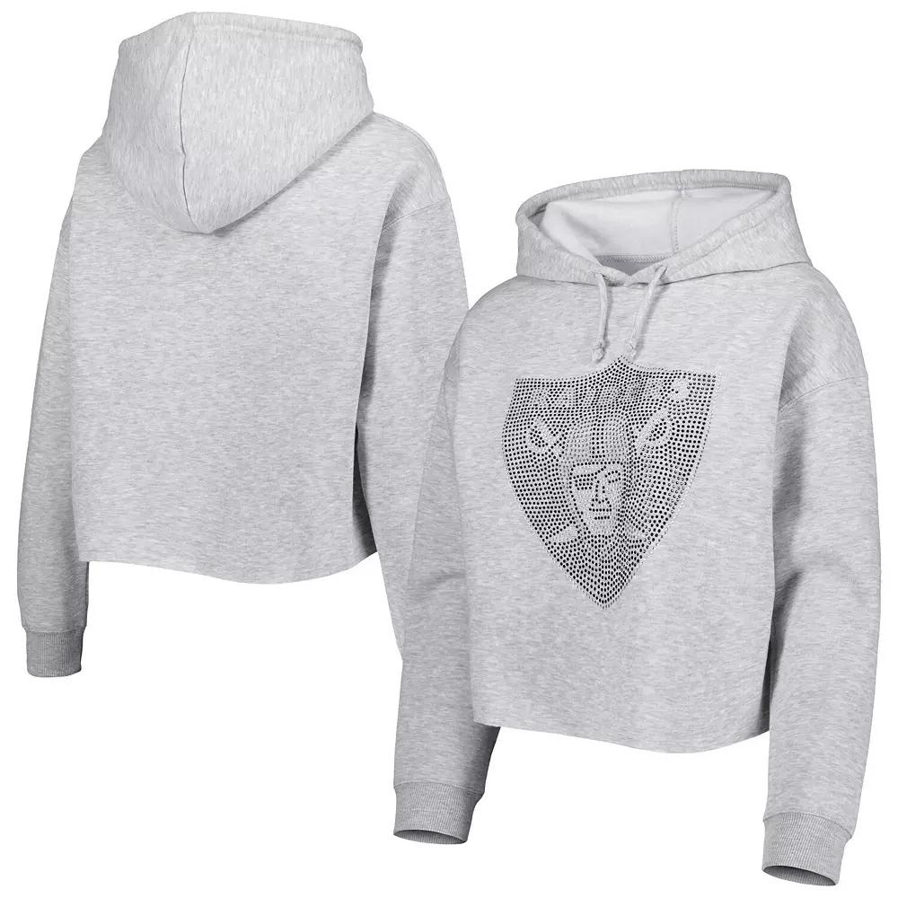 If you're searching for a stylish Las Vegas Raiders game day top, then look no further than this Crystal Logo pullover hoodie from Cuce. It features a radiant team rhinestone embellishment that lets your unwavering fandom shine to the rest of the world. The cropped hem is sure to make this fashionable piece your next go-to option for cheering on the Las Vegas Raiders.
