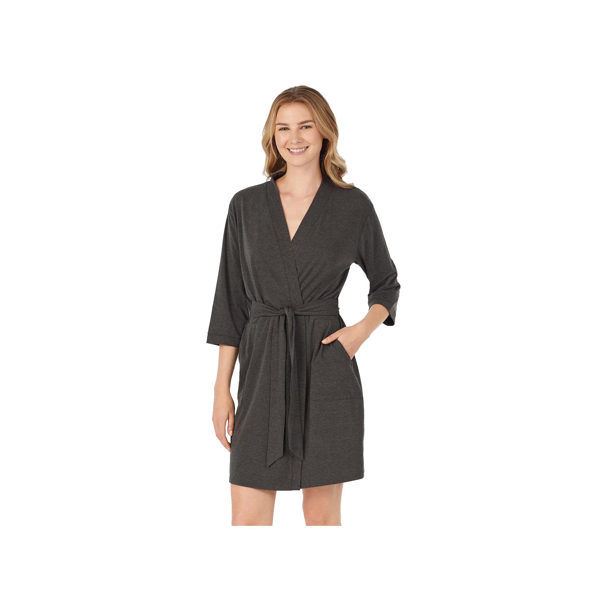 This womens Cuddl Duds wrap robe is the perfect addition to your bedtime wardrobe. Tie closure Tag free Jersey construction 2-pocket 3/4-length sleevesFIT & SIZING 36-in. approximate length from shoulder to hemFABRIC & CARE Polyester, cotton, spandex Machine wash Imported Size: X Small. Color: Charcoal. Gender: female. Age Group: adult.