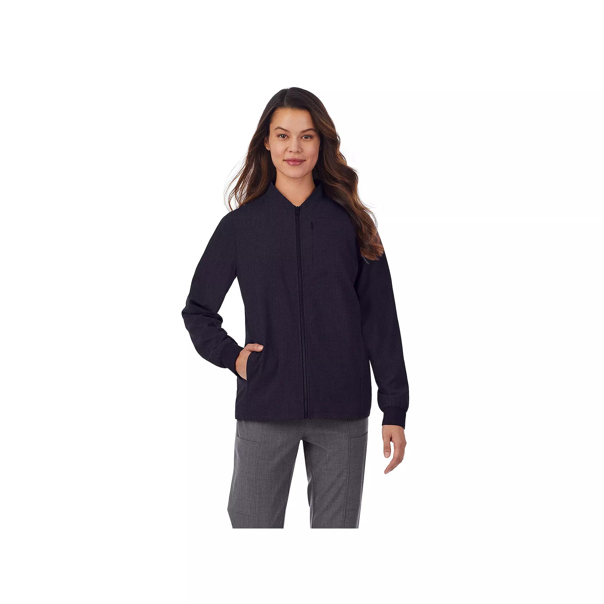Featuring ample pockets and a stretch construction for ease of motion, this womens Cuddl Duds Scrubs lined jacket is perfect for layering on a busy day. Featuring ample pockets and a stretch construction for ease of motion, this womens Cuddl Duds Scrubs lined jacket is perfect for layering on a busy day. 1 zippered chest pocket, 2 exterior pockets, 2 interior pockets Stretch construction for ease of motion Fully lined in cozy knit Tag free Agion anti-microbial technology to help combat odor-causing bacteria The antimicrobial properties do not protect users or others against bacteria, viruses, germs, or other disease organisms. Style Number: CD8022323FIT & SIZING Classic fit Zipper frontFABRIC & CARE Polyester, rayon, spandex Machine wash Imported Size: Medium. Color: Black. Gender: female. Age Group: adult.