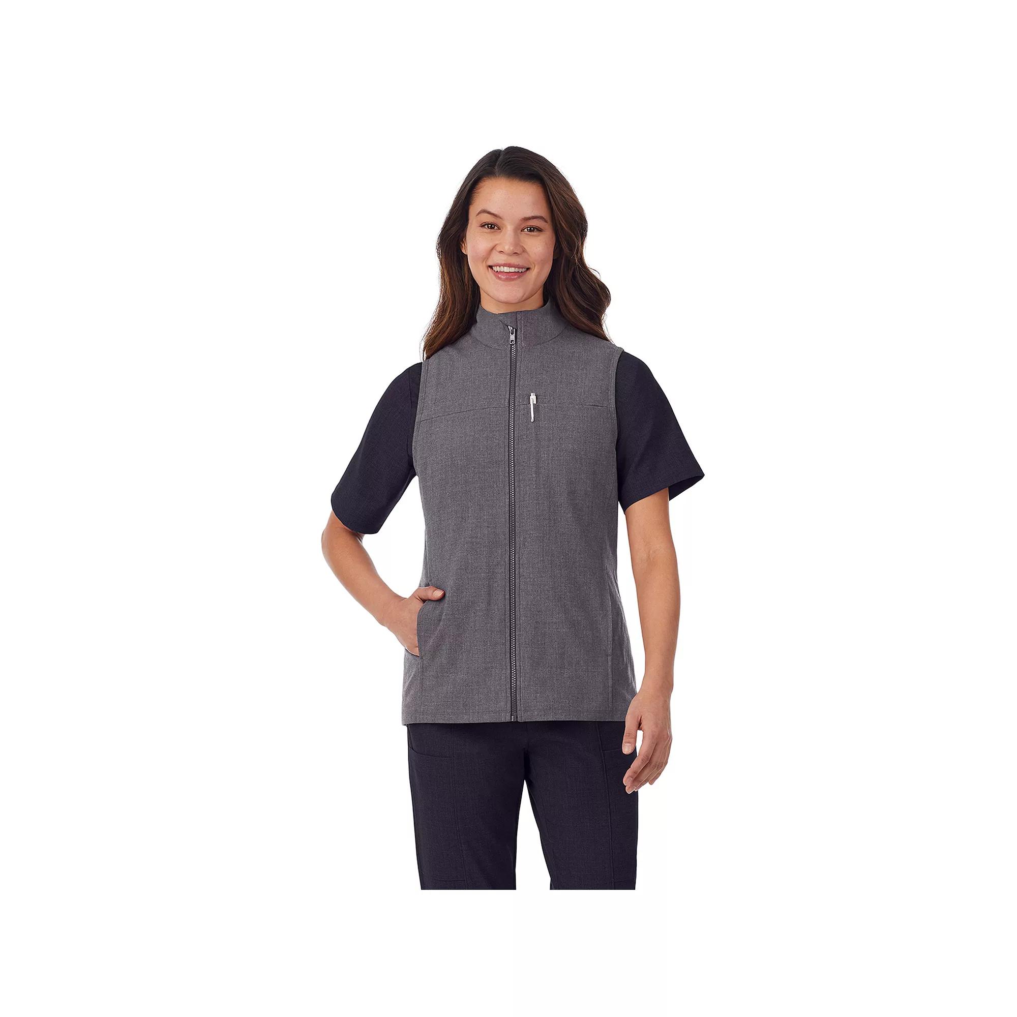 Featuring ample pockets and a stretch construction for ease of motion, this womens Cuddl Duds Scrubs vest is perfect for layering on a busy day. Featuring ample pockets and a stretch construction for ease of motion, this womens Cuddl Duds Scrubs vest is perfect for layering on a busy day. High neck for warmth 1 chest pocket with pen slot, 2 exterior pockets, 2 interior pockets Stretch construction for ease of motion Fully lined in cozy knit Tag free Agion anti-microbial technology to help combat odor-causing bacteria The antimicrobial properties do not protect users or others against bacteria, viruses, germs, or other disease organisms. Style number: CD5022323FIT & SIZING Zipper frontFABRIC & CARE Polyester, rayon, spandex Machine wash Imported Size: Medium. Color: Charcoal. Gender: female. Age Group: adult.