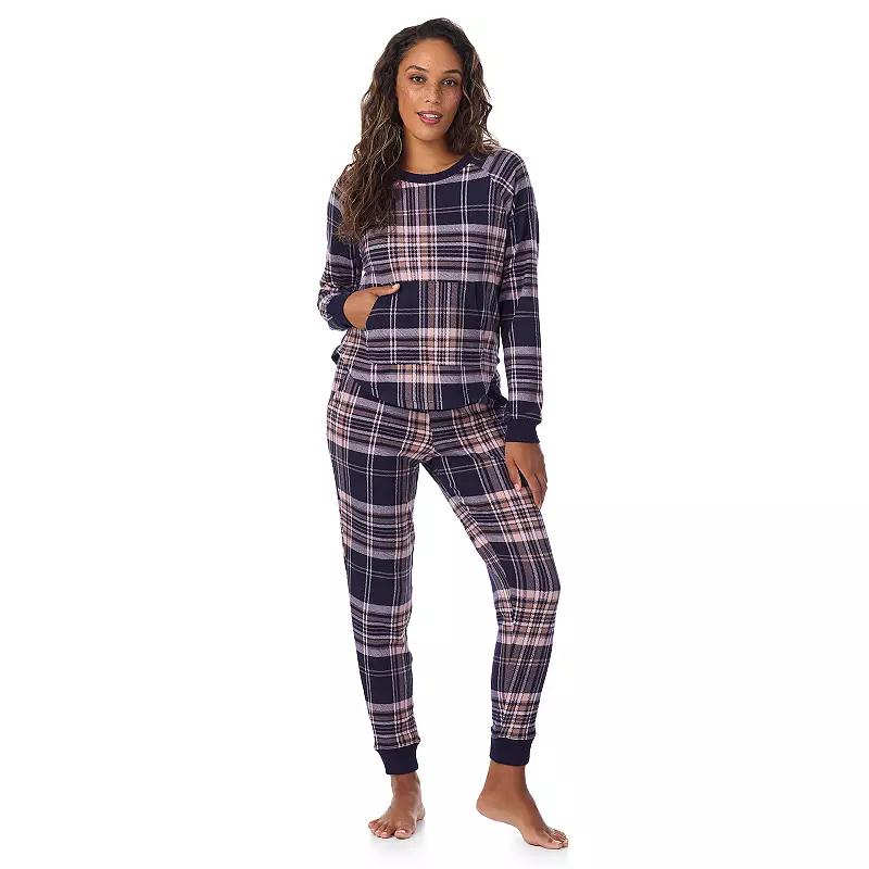 Embrace cozy nights with this delightful pajama set from Cuddl Duds, designed for ultimate relaxation. The top and jogger bottoms offer a flattering fit that moves with you, ensuring comfort for everything from evening lounging to sweet dreams. Click on this INTIMATES & SLEEPWEAR GUIDE to find the perfect fit and more! - https://www.kohls.com/feature/womens-sleepwear-and-intimates-guide.jsp. FIT & SIZE: Women's Reg, Relaxed fit, Tulip hemline, Midrise sits on the high hip, Regular: 29-in inseam, 10-in banded leg opening, Covered elastic waistband. DETAILS: Crewneck, Long sleeves, Raglan sleeves, Ribbed cuffs, 1 kangaroo pocket on top, 2 side seam pockets on bottoms, Imported. MATERIAL & CARE: Knit feel, Polyester, spandex, Machine wash and tumble dry low. Size: Large. Color: Navy Plaid. Gender: female. Age Group: adult.