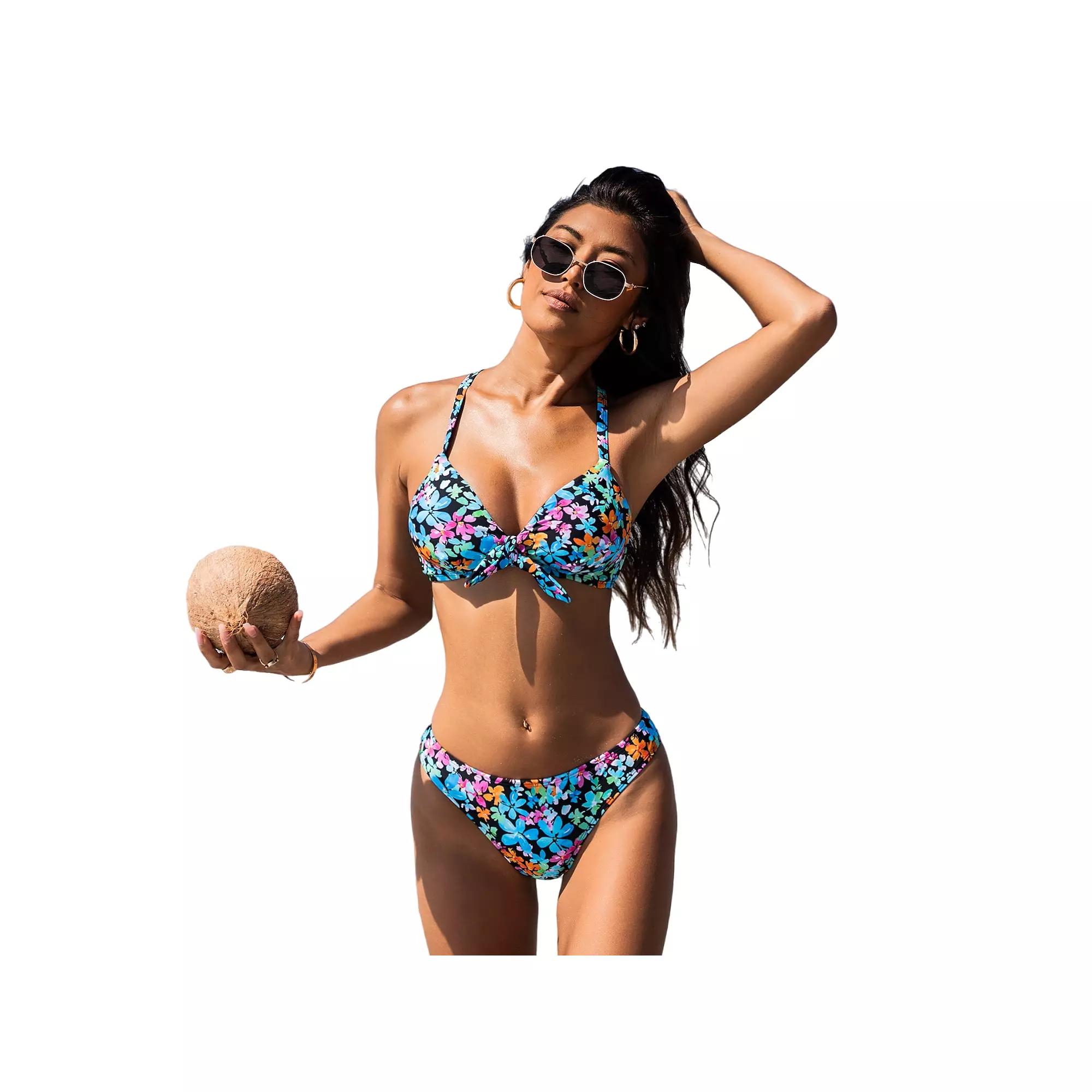 Dive into summer fun with the Cupshe floral print bikini set, designed to make a splash in style. The knotted, back cross bikini top offers adjustable shoulder straps for a secure fit, while the low-rise bikini bottom allows for easy movement, making it perfect for swimming, lounging, or creating adorable beach-ready looks with cover-ups. Click on this WOMEN'S GUIDE to find the perfect fit and more! - https://www.kohls.com/feature/womens-fit-guide.jsp. FEATURES: 2-piece set includes: top and bottoms, No closure - pull-on styling, Sleeveless, V-neck, Adjustable shoulder straps, Wireless, Partially lined, Lined gusset, Nonfunctional bow. FIT & SIZING: Elastic waistband, Low rise sits on the hip, Moderate coverage, Removable padded cups. FABRIC & CARE: Polyester, spandex, Hand wash, Imported. Size: X Large. Color: Floral Blue. Gender: female. Age Group: adult. Material: NYLON SPANDEX.