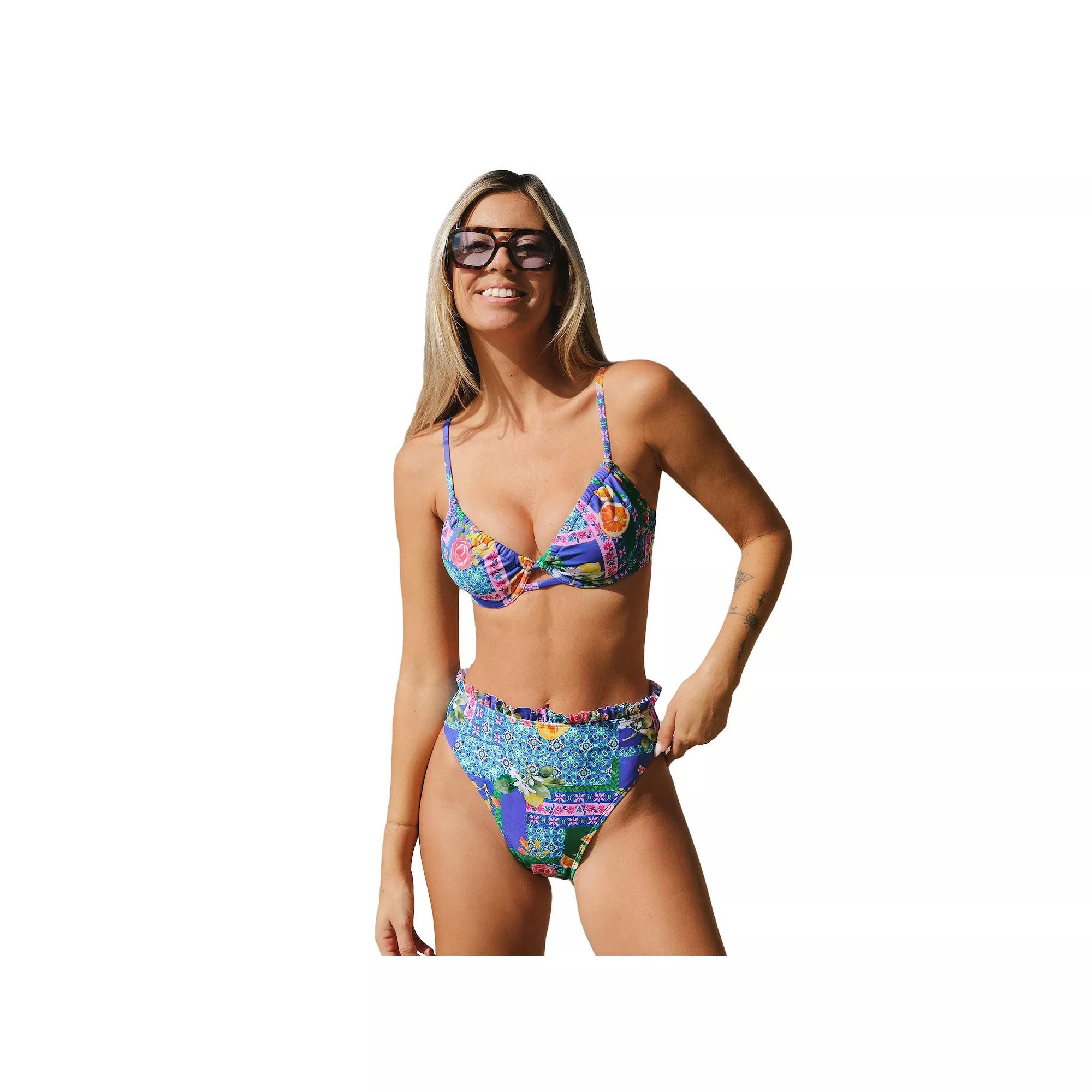 Turn heads at the beach in this chic two-piece bikini set from Cupshe, featuring a flattering triangle top with supportive underwire and adjustable spaghetti straps. The high-waisted cheeky bottoms not only offer stylish coverage but also provide a secure fit, perfect for splashing in the waves or lounging poolside. Click on this WOMEN'S GUIDE to find the perfect fit and more! - https://www.kohls.com/feature/womens-fit-guide.jsp. FEATURES: 2-piece set includes: top and bottoms, Hook & loop closure, V-neck, 1 hook column and 1 hook row, Adjustable spaghetti straps, Underwire, Sleeveless, Partially lined, Lined gusset. FIT & SIZING: High rise sits below the natural waistline, Moderate coverage, Elastic waistband, Push-up removeable cups. FABRIC & CARE: Polyester, spandex, Hand wash, Imported. Size: X Large. Color: Purple. Gender: female. Age Group: adult. Pattern: floral. Material: NYLON SPANDEX.
