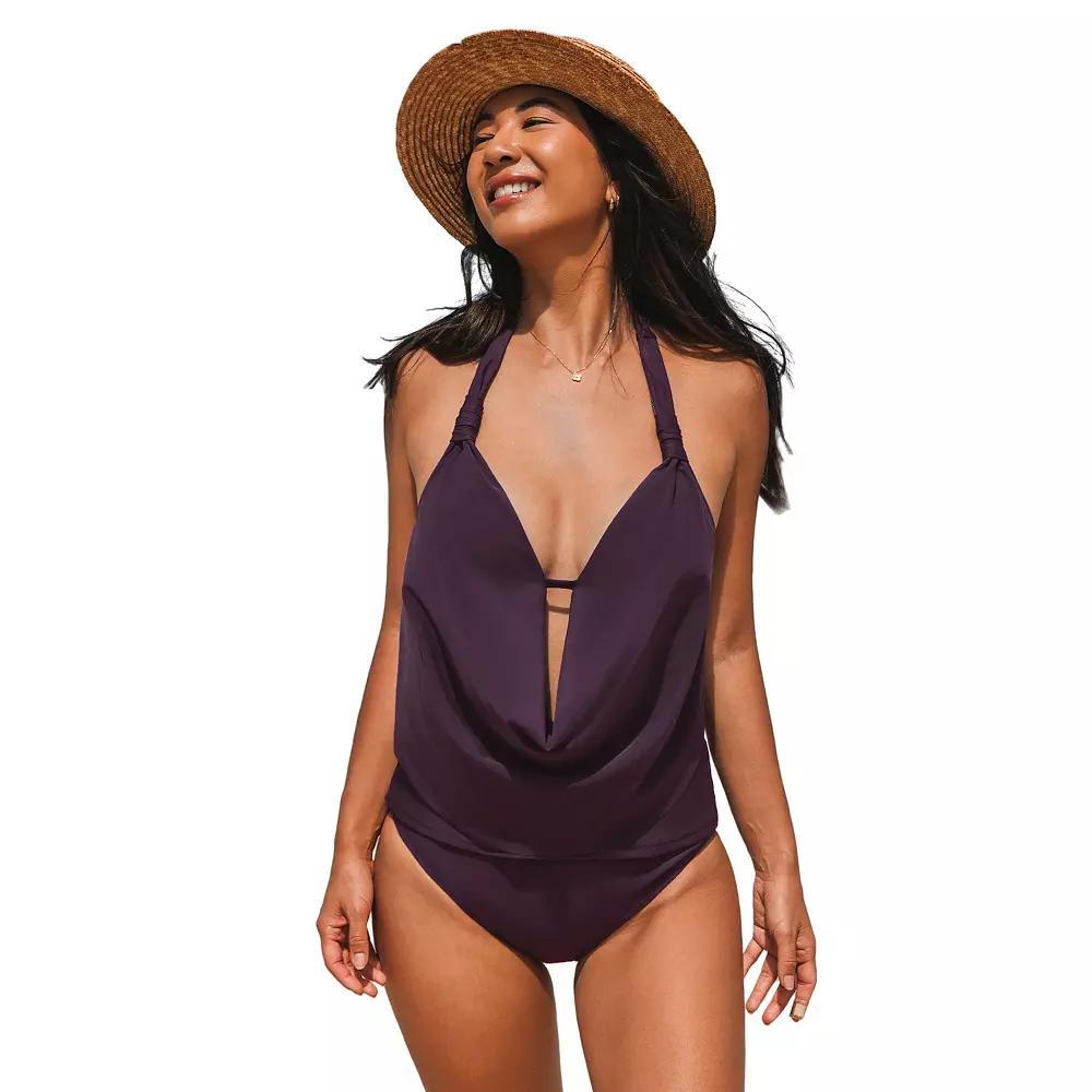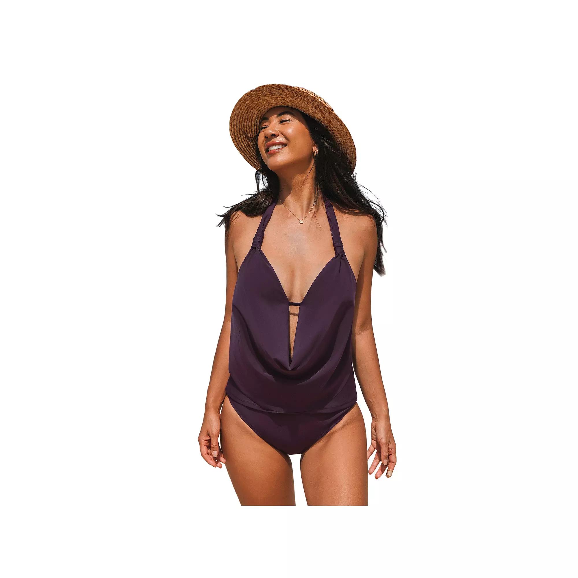 Elevate your summer style with this stunning tankini set from Cupshe. Featuring a beautifully draped halter top with a cowl deep V neck that flatters your figure, and high-waisted bottoms that bring a nostalgic flair, this ensemble promises both comfort and confidence for those sunny beach days or lounging by the pool. Click on this WOMEN'S GUIDE to find the perfect fit and more! - https://www.kohls.com/feature/womens-fit-guide.jsp. FEATURES: 2-piece set includes: swim top and swim bottoms, Tie closure, V-neck, Sleeveless, Wireless, Removable soft cups, Partially lined, Lined gusset. FIT & SIZING: High rise sits below the natural waistline, Elastic waistband, Adjustable straps, Moderate coverage. FABRIC & CARE: Body: nylon, spandex, Lining: polyester, spandex, Hand wash, Imported. Size: Medium. Color: Purple. Gender: female. Age Group: adult. Material: NYLON SPANDEX.