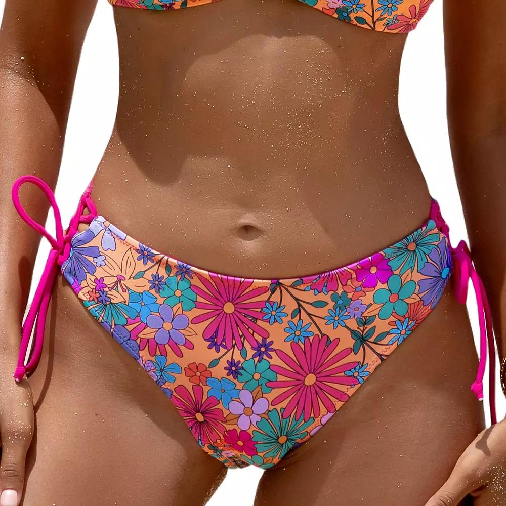 Enjoy comfort and style at the beach or pool with these high rise bikini bottoms from Cupshe. The reversible design lets you express your own unique personality while the moderate coverage will keep you feeling secure. Click on this WOMEN'S GUIDE to find the perfect fit and more! - https://www.kohls.com/feature/womens-fit-guide.jsp. FEATURES: Reversible, Side tie details. FIT & SIZE: High rise sits below the natural waistline, Elastic waistband. DETAILS: No closure - pull-on styling, Moderate coverage, Imported. MATERIAL & CARE: Knit construction, Body: nylon, spandex, Lining: polyester, spandex, Lined gusset, Hand wash. Size: Large. Color: Pink Floral. Gender: female. Age Group: adult. Material: NYLON SPANDEX.
