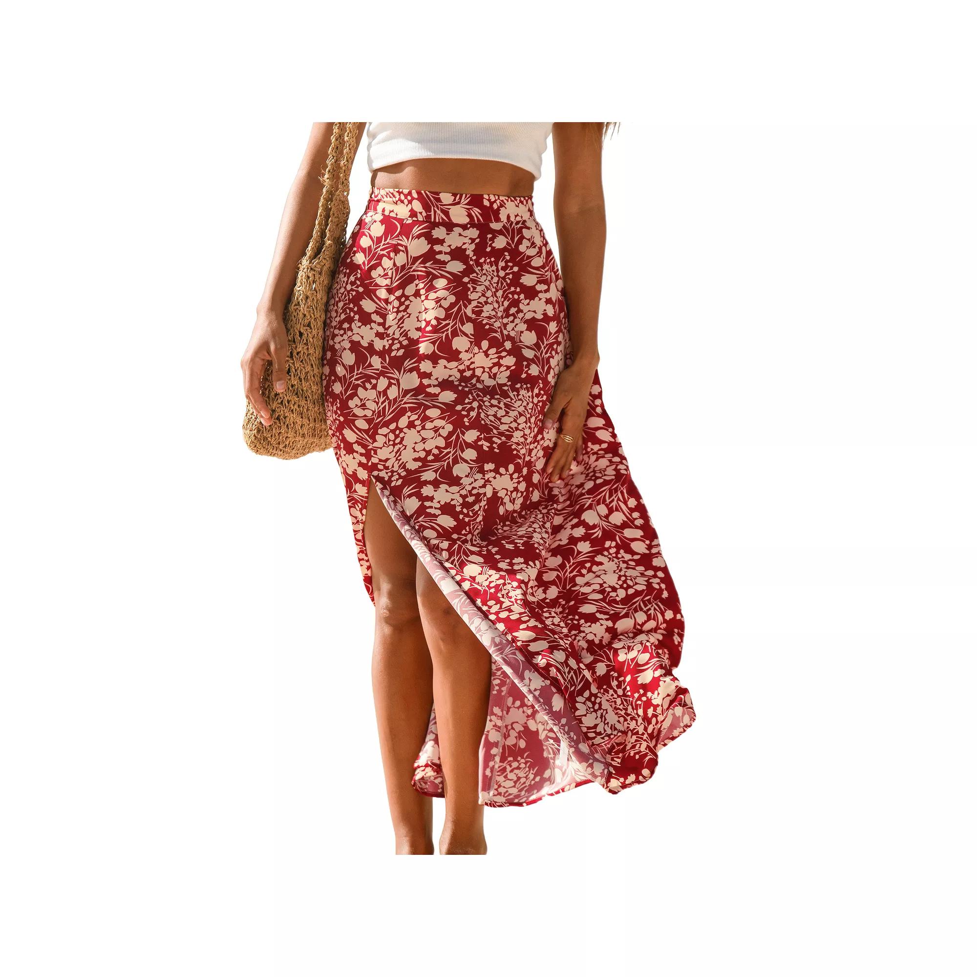 Elevate your sunny day wardrobe with this stunning floral-print maxi skirt from Cupshe, featuring a vibrant red and yellow design that effortlessly captures the essence of summer. With its high-waisted fit, split design, and flared legs, this skirt offers a perfect blend of comfort and style, making it an ideal choice for beach outings or casual outings with friends. Click on this WOMEN'S GUIDE to find the perfect fit and more! - https://www.kohls.com/feature/womens-fit-guide.jsp. FEATURES: Split design. FIT & SIZE: Regular fit, A-line silhouette, Maxi length hits at the ankle, 38 1/2-in. length, Banded hem, Relaxed fit through the hip and thigh, High rise sits below the natural waistline, Flared leg opening. DETAILS: Zipper closure, Moderate coverage, Imported. MATERIAL & CARE: Soft construction, Polyester, Hand wash. Size: Small. Gender: female. Age Group: adult. Pattern: floral print. Material: COTTON.