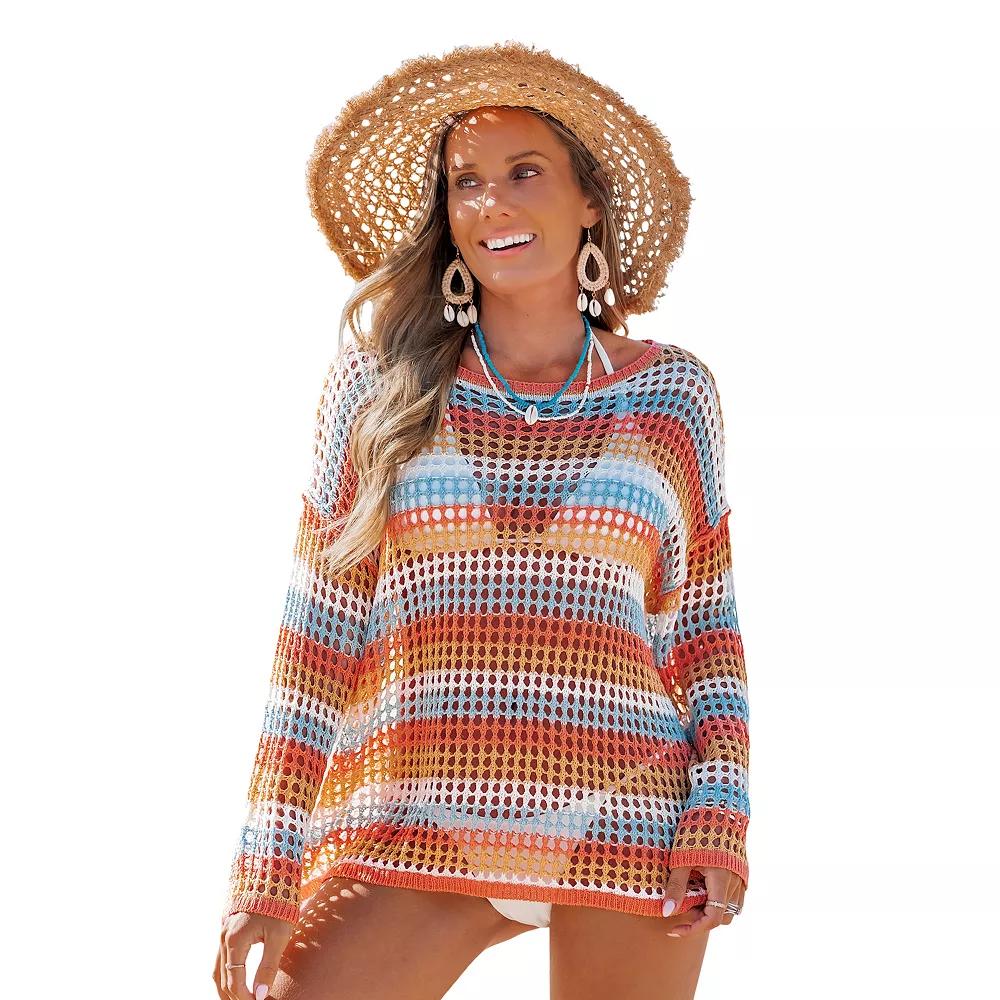 Embrace sunny days by the pool or at the beach with this stunning cover-up from Cupshe. Featuring a sunset stripe design, this top offers effortless style and comfort, making it the perfect addition to your summer wardrobe. Click on this WOMEN'S GUIDE to find the perfect fit and more! - https://www.kohls.com/feature/womens-fit-guide.jsp. FEATURES: Pullover styling, Long sleeves, U-neck, Dolman drop-shoulder sleeves. FIT & SIZE: 22 3/4-in. length from shoulder to hem, Banded hem. MATERIAL & CARE: Polyester, Hand wash, Imported. Size: Medium. Color: Red. Gender: female. Age Group: adult. Material: COTTON.
