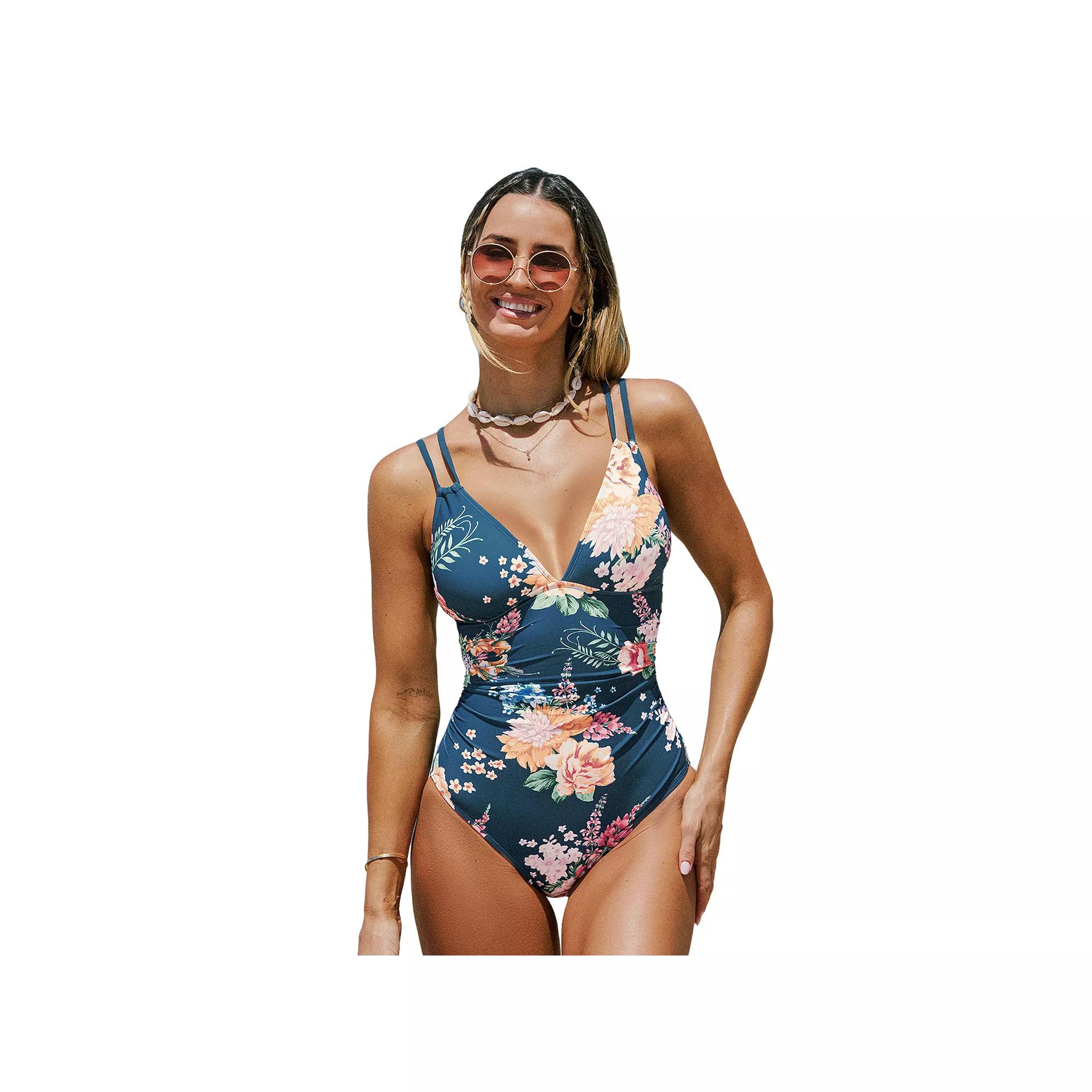Dive into summer with confidence in this stunning one-piece swimsuit from Cupshe, designed to flatter your curves with its eye-catching floral print and stylish back cutout. Featuring tummy control and adjustable double straps, this suit ensures a secure fit that's perfect for swimming, lounging on the beach, or pairing with your favorite cover-ups. Click on this WOMEN'S GUIDE to find the perfect fit and more! - https://www.kohls.com/feature/womens-fit-guide.jsp. FEATURES: Moderate coverage, Soft construction, V-neck, Sleeveless, Wireless, Tummy slimmer, Back cutout, Pullover styling. FIT & SIZING: Adjustable straps, Removable soft cups, Medium bust support. FABRIC & CARE: Nylon, spandex, Polyester & spandex lining, Hand wash, Imported. Size: Small. Color: Green. Gender: female. Age Group: adult. Material: NYLON SPANDEX.