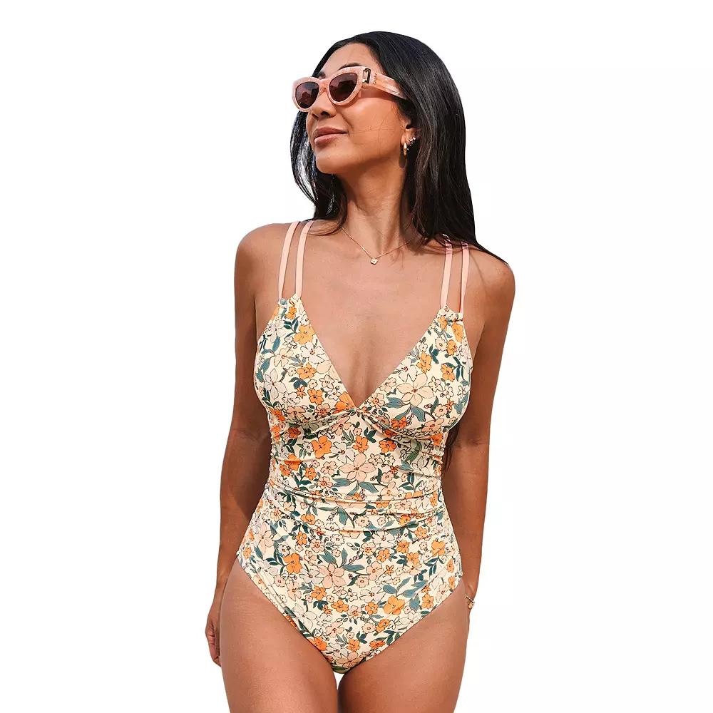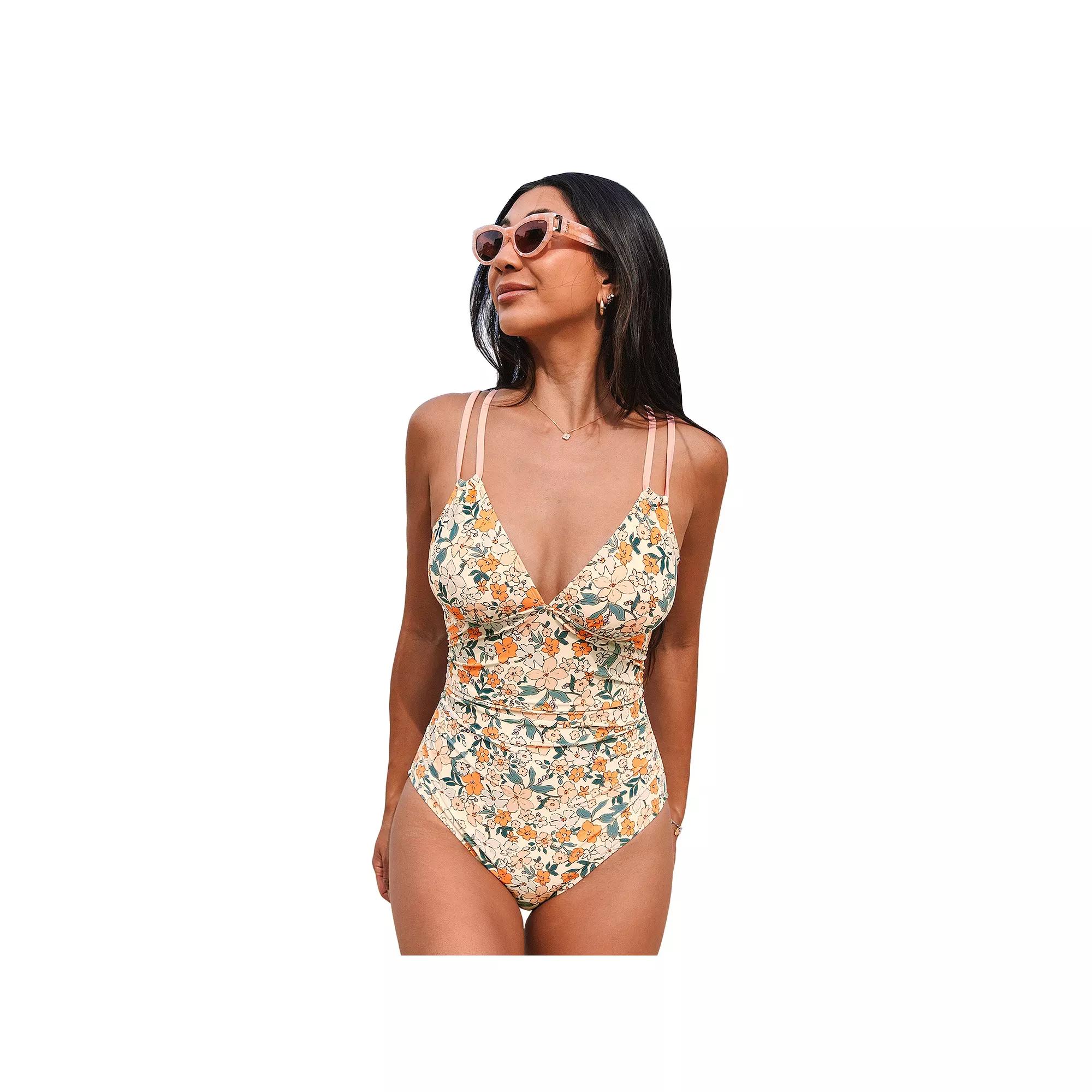 Dive into summer with confidence in this stunning one-piece swimsuit from Cupshe, designed to flatter your curves with its eye-catching floral print and stylish back cutout. Featuring tummy control and adjustable double straps, this suit ensures a secure fit that's perfect for swimming, lounging on the beach, or pairing with your favorite cover-ups. Click on this WOMEN'S GUIDE to find the perfect fit and more! - https://www.kohls.com/feature/womens-fit-guide.jsp. FEATURES: Moderate coverage, Soft construction, V-neck, Sleeveless, Wireless, Tummy slimmer, Back cutout, Pullover styling. FIT & SIZING: Adjustable straps, Removable soft cups, Medium bust support. FABRIC & CARE: Nylon, spandex, Polyester & spandex lining, Hand wash, Imported. Size: Small. Color: Orange. Gender: female. Age Group: adult. Material: NYLON SPANDEX.