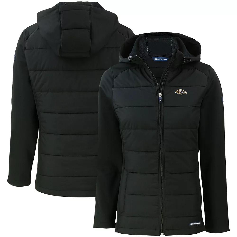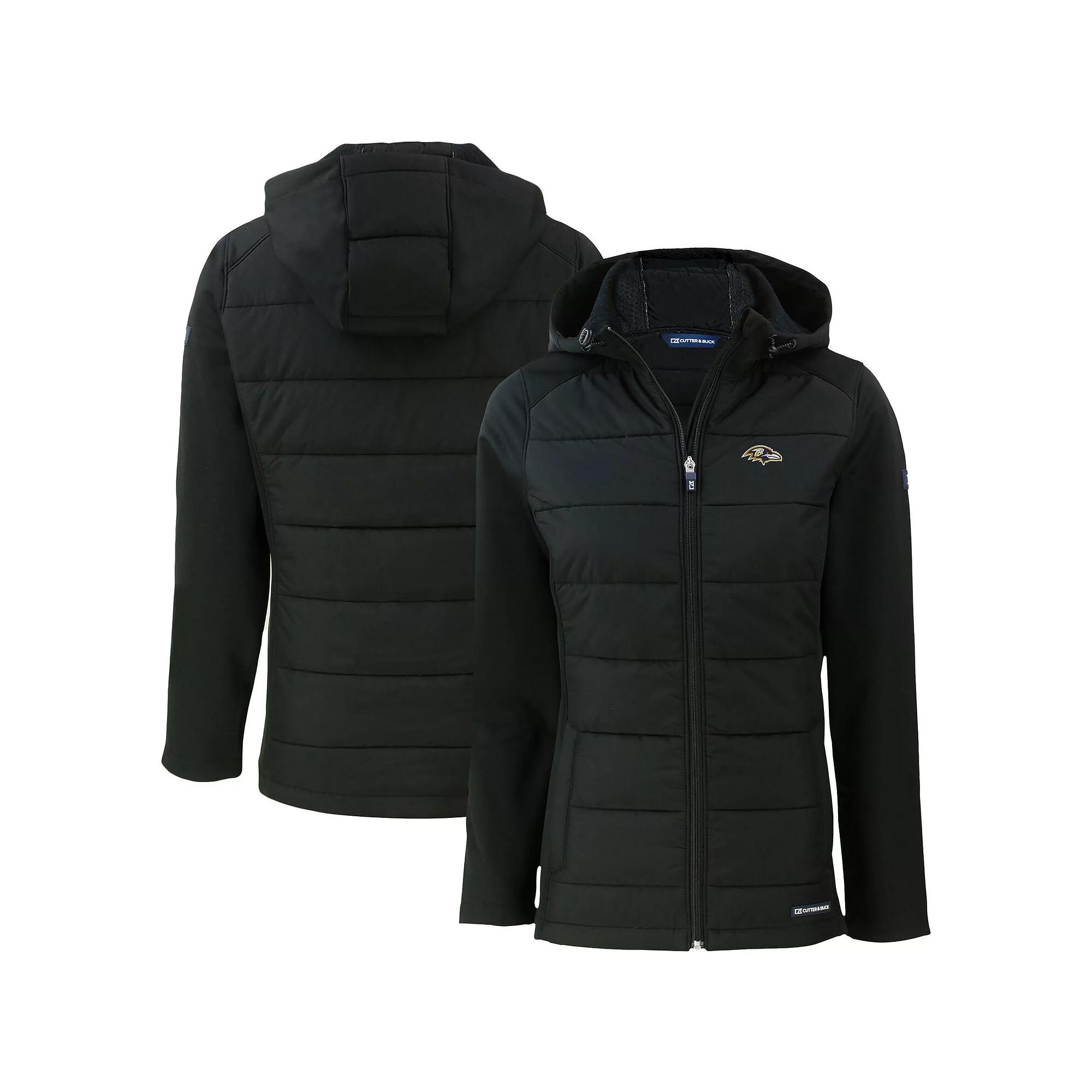 Add an extra layer of warmth to your game-day attire with this Baltimore Ravens Evoke PrimaLoft Hybrid Eco Softshell Recycled Full-Zip Hooded Jacket. Featuring a water-resistant finish and PrimaLoft insulation technology, this heavyweight Cutter & Buck jacket is designed to keep you warm in cold temperatures. This piece also has embroidered Baltimore Ravens graphics, so you won't have to sacrifice your team spirit when layering for cold weather. DWR water resistant finish. Embroidered graphics. Primaloft insulation at front & back panels. Machine wash, tumble dry low. Heavyweight jacket suitable for cold temperatures. PrimaLoft Insulation is designed to provide warmth and comfort while also offering high-level, technical performance. Brand: Cutter & Buck. Locker loop drawstring. Hooded. Honeycomb softshell. Full Zip. Made from an average of 25 recycled plastic bottles. 3000K Water Proof/6000K Breathability. Global Recycled Standard. Imported. Officially licensed. Zippered side pockets. Long sleeve. Fleece interior. Material: 100% Recycled Polyester. Color: Black. Gender: female. Age Group: adult. Material: COTTON.