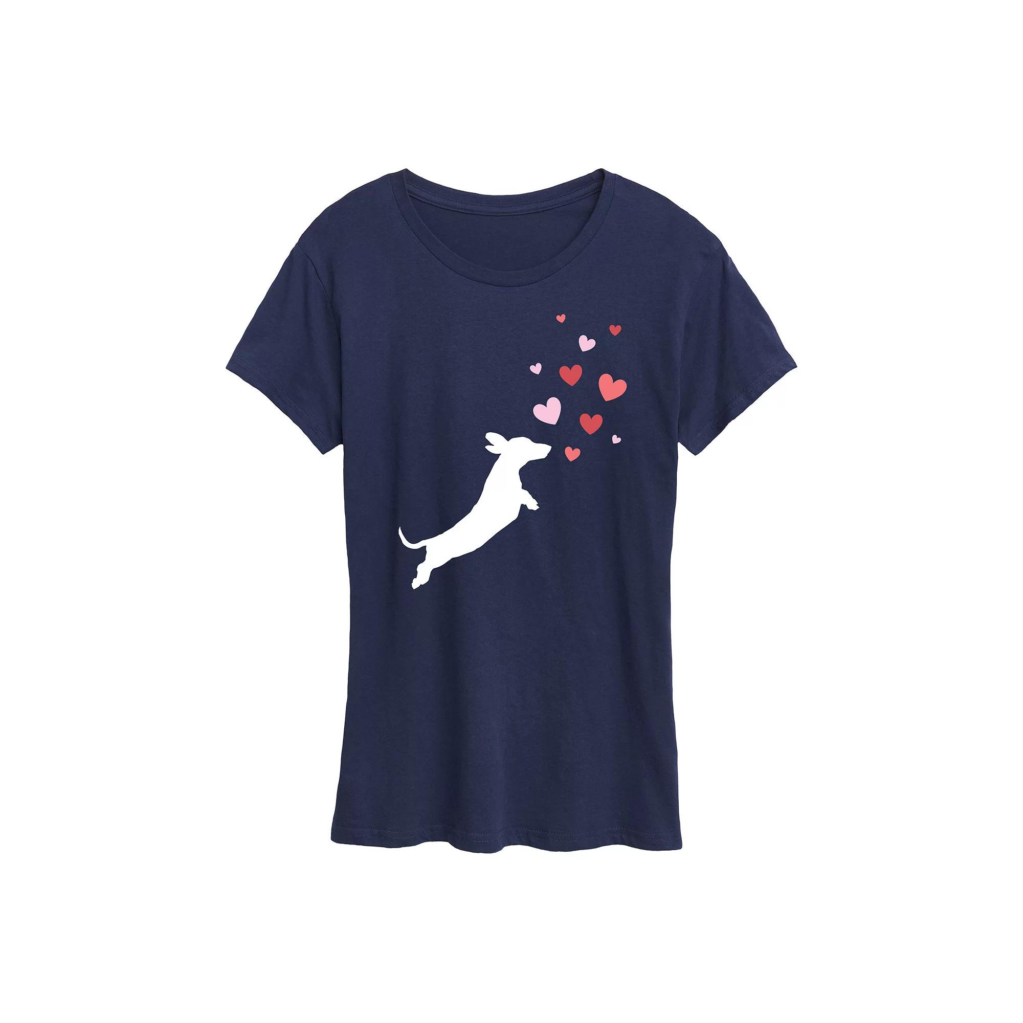 Women's Dachshund Chasing Hearts Graphic Tee,