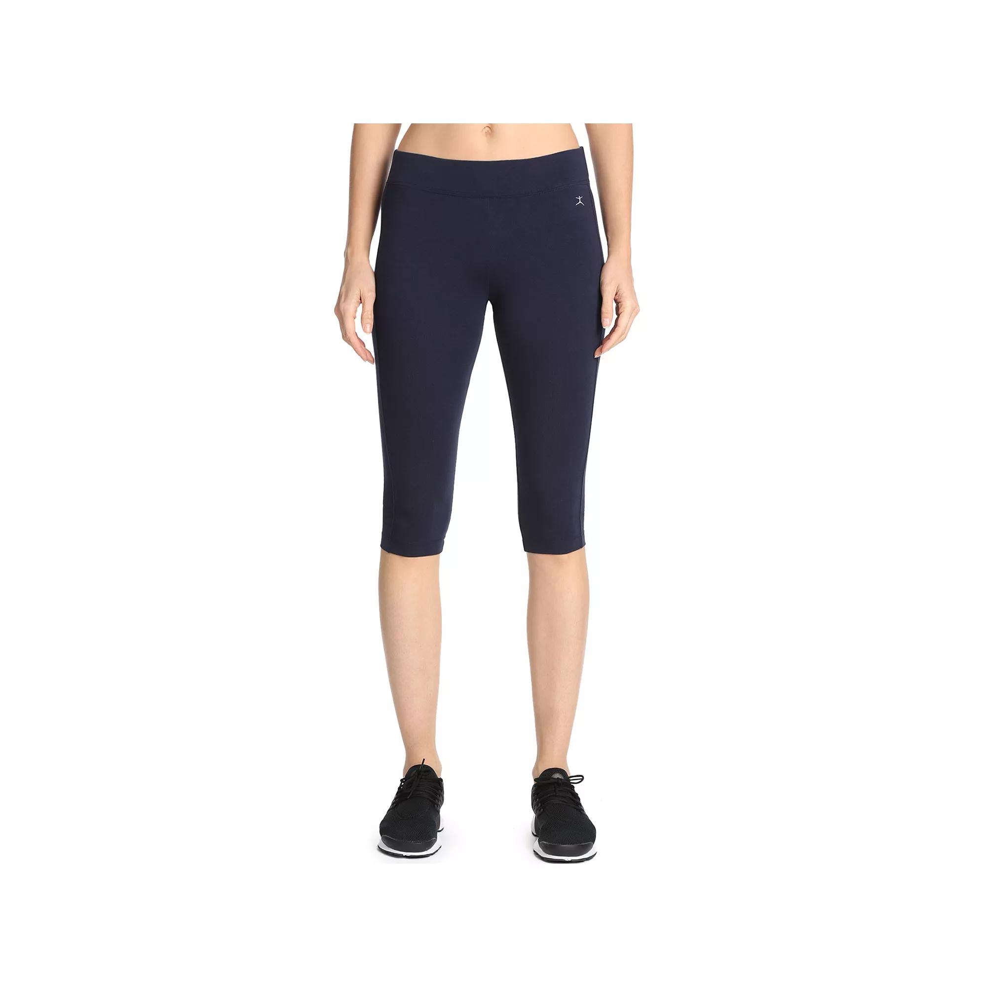 Keep cool when your workout heats up with these womens Danskin capri leggings. Smooth, stretchy matte fabric Wide elastic waistband for flattering look Reinforced wicking gusset FIT & SIZING 16-in. approximate inseam Midrise sits above the hip FABRIC & CARE Cotton, polyester, spandex Machine wash Imported Size: Large. Color: Navy. Gender: female. Age Group: adult.