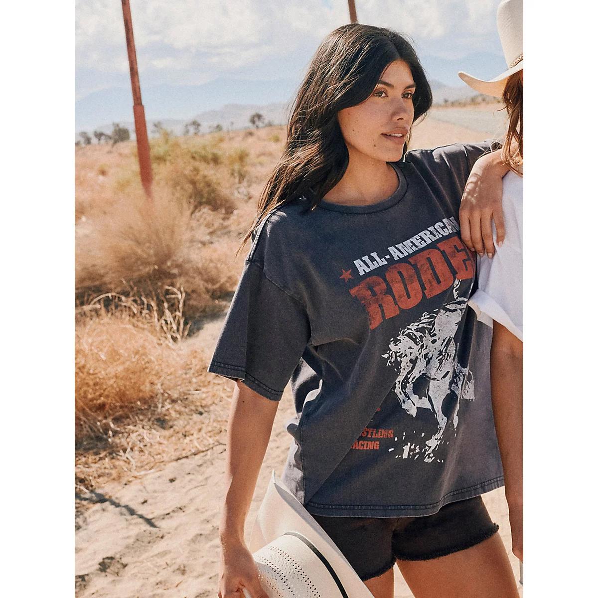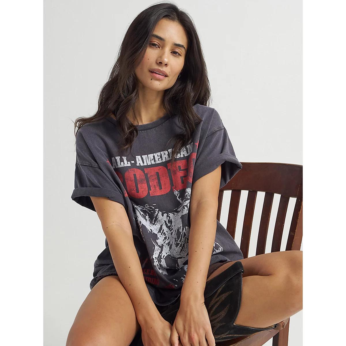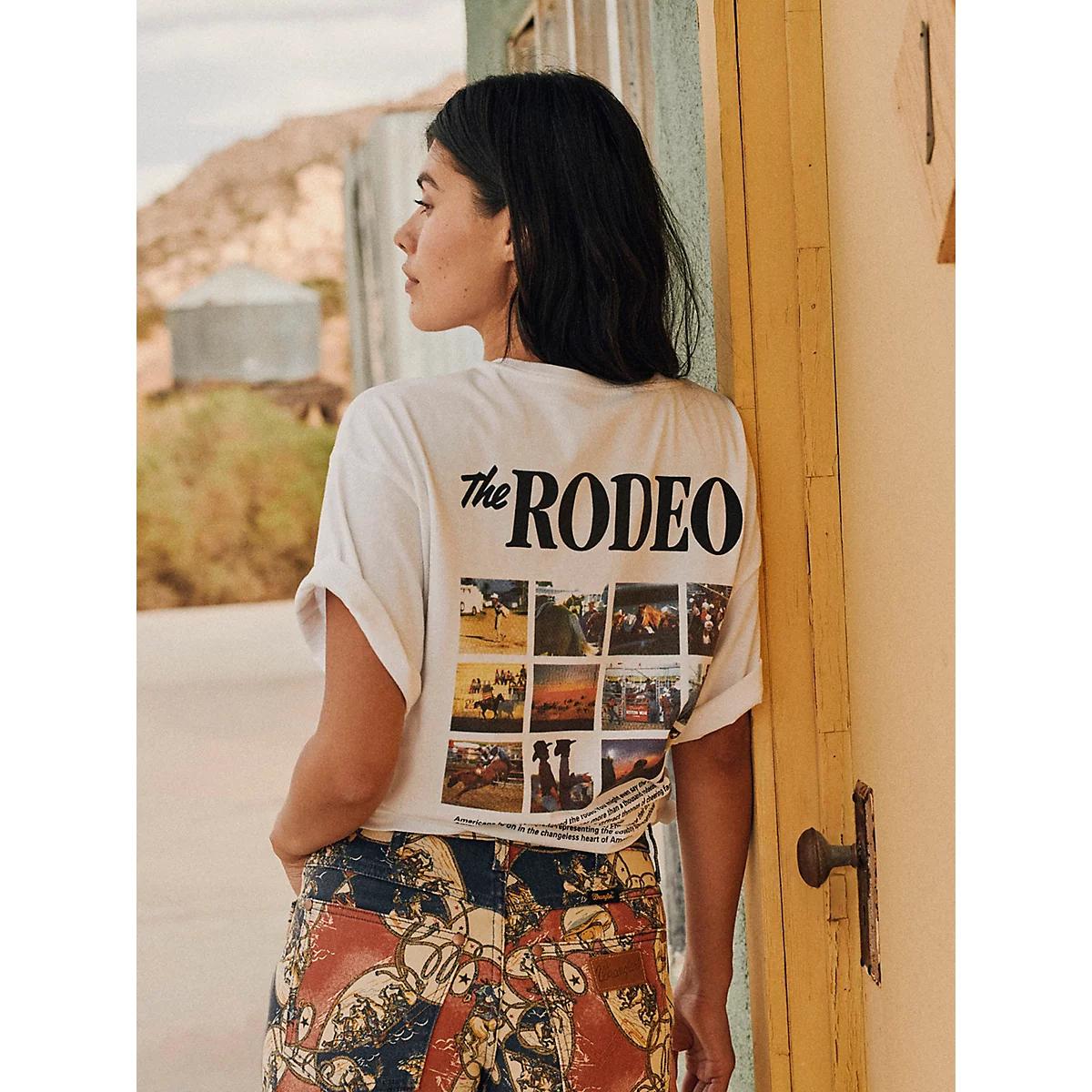 Celebrating the enduring spirit of rodeo, this oversized tee combines retro-inspired snapshots from some of our favorite rodeo events with a bit of rodeo history added in at the bottom of the back. It's cut loose and long with dropped shoulders for a lived-in look and feel. Nothing goes better with your Wrangler® denim than a classic crewnec