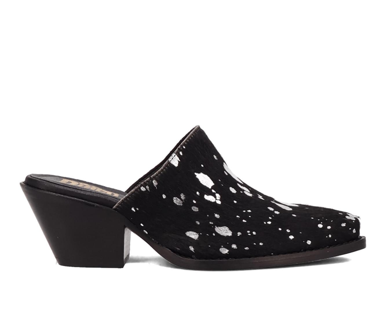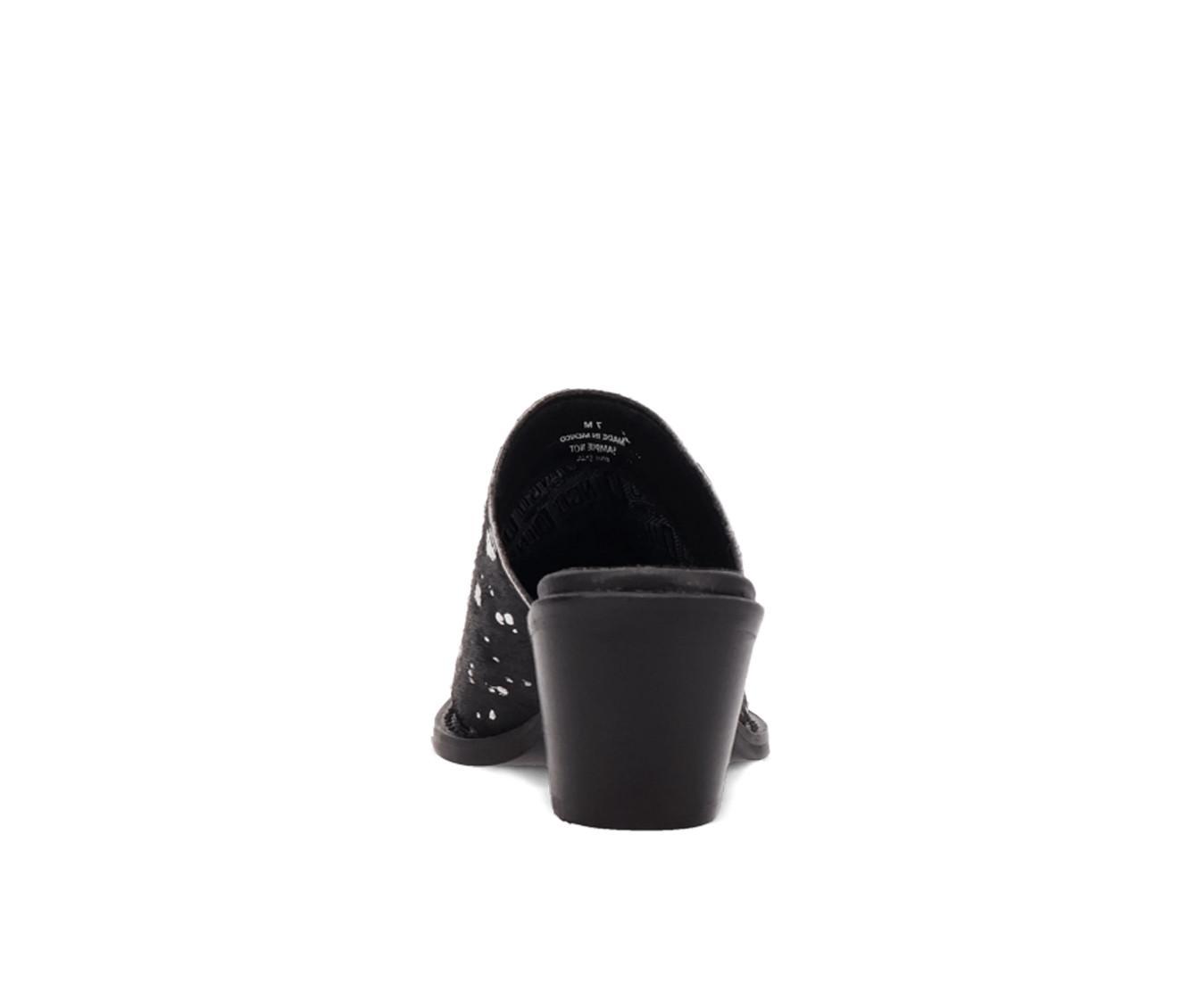 Channel western charm with a bold, artsy twist in these effortlessly stylish heeled mules. Designed with a statement-making haircalf-texture upper splattered in metallic or vivid paint-like details, this backless silhouette delivers elevated flair with every step. The easy slip-on design combines with a sturdy block heel to create the perfect mix of convenience and confidence. Whether you're headed to a concert or downtown stroll, this mule keeps things fashionable and fun from day to night.