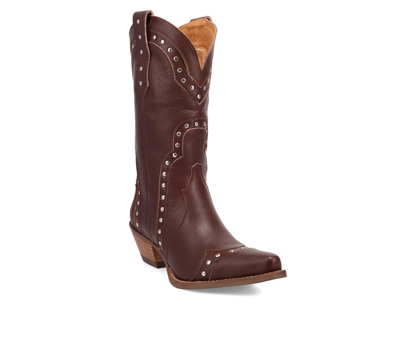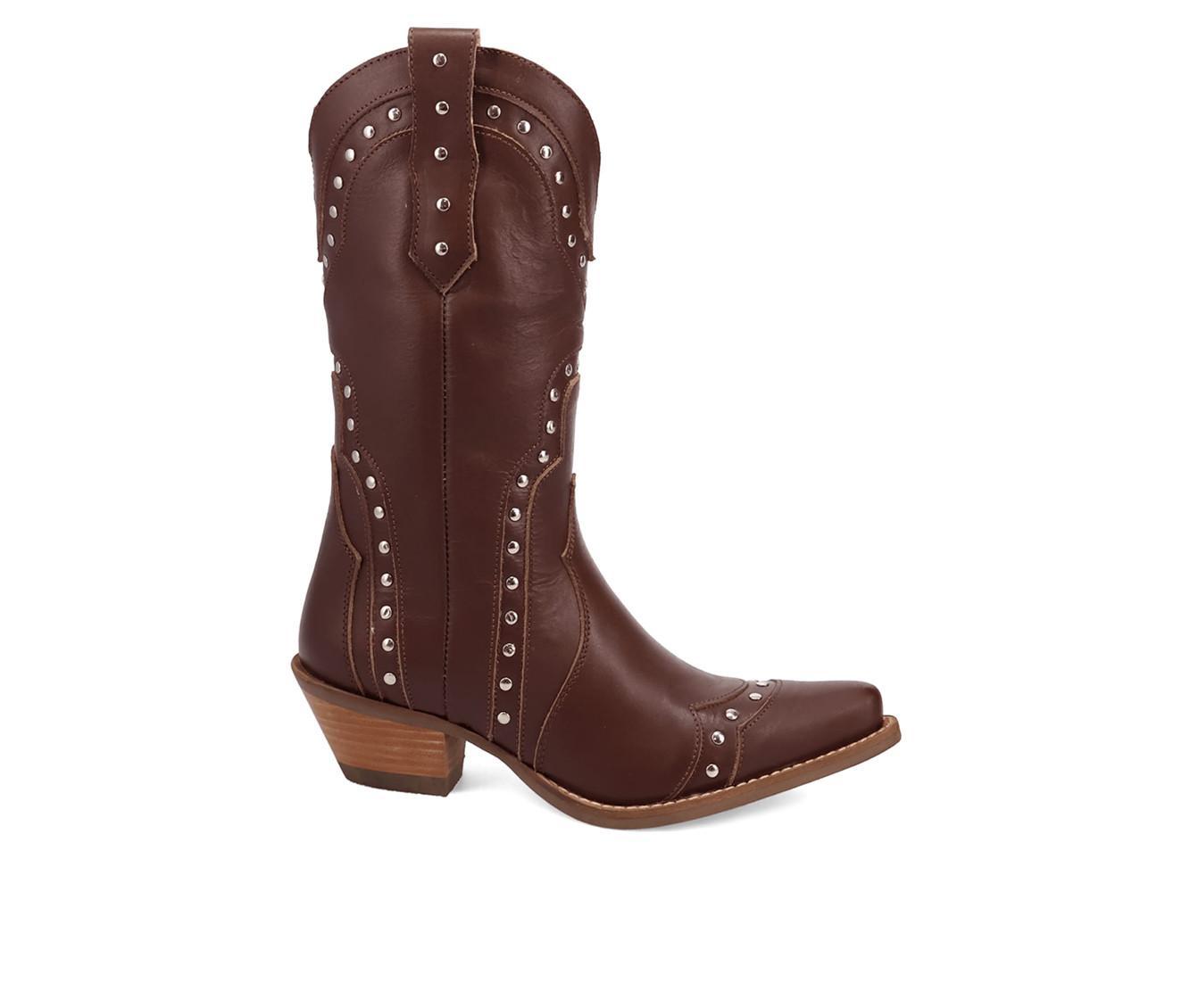 Make your mark in these bold western boots designed to steal the spotlight with every step. Featuring a smooth synthetic upper accented with gleaming metal studs and western panel overlays, these boots deliver serious edge with authentic cowgirl roots. The classic pull-on design includes sturdy side tabs for easy wear, while a low cowboy heel and snip toe complete the iconic silhouette. Whether you're headed to a festival or night out, these boots bring glam and grit in equal measure.