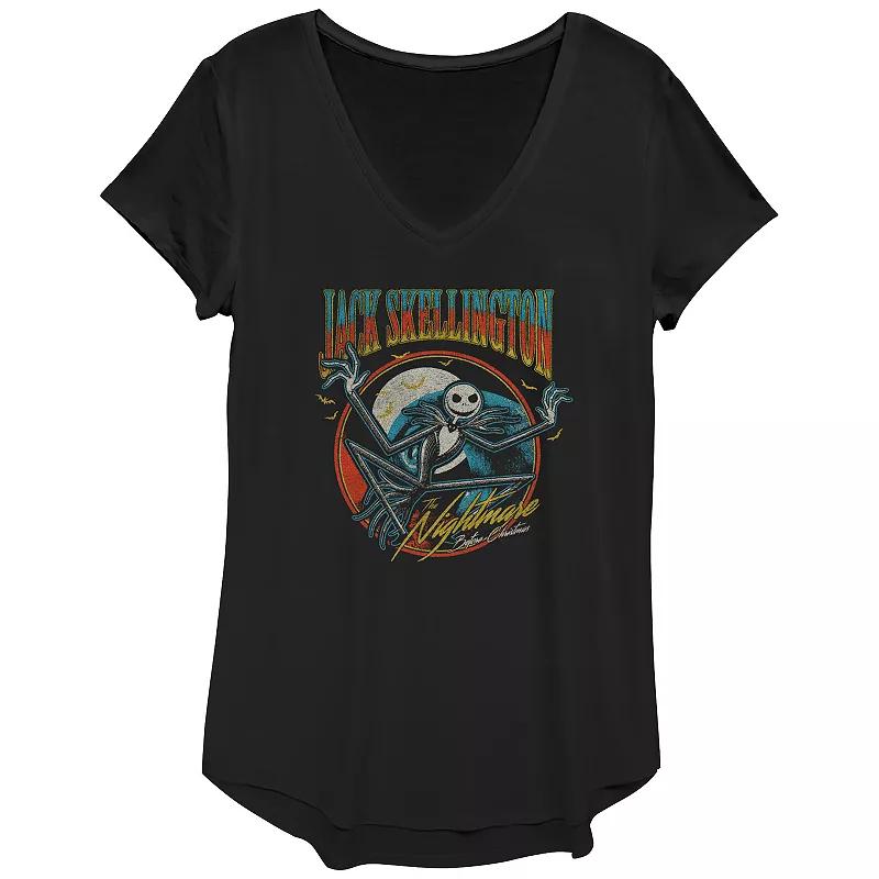 Shell love the look and feel of this Womens Disney Nightmare Before Christmas Jack Skellington Graphic Tee. Shell love the look and feel of this Womens Disney Nightmare Before Christmas Jack Skellington Graphic Tee. FEATURES V-neck Short SleevesFABRIC & CARE Polyester/Rayon/Spandex Machine wash Imported Size: Medium. Color: Black. Gender: female. Age Group: kids.