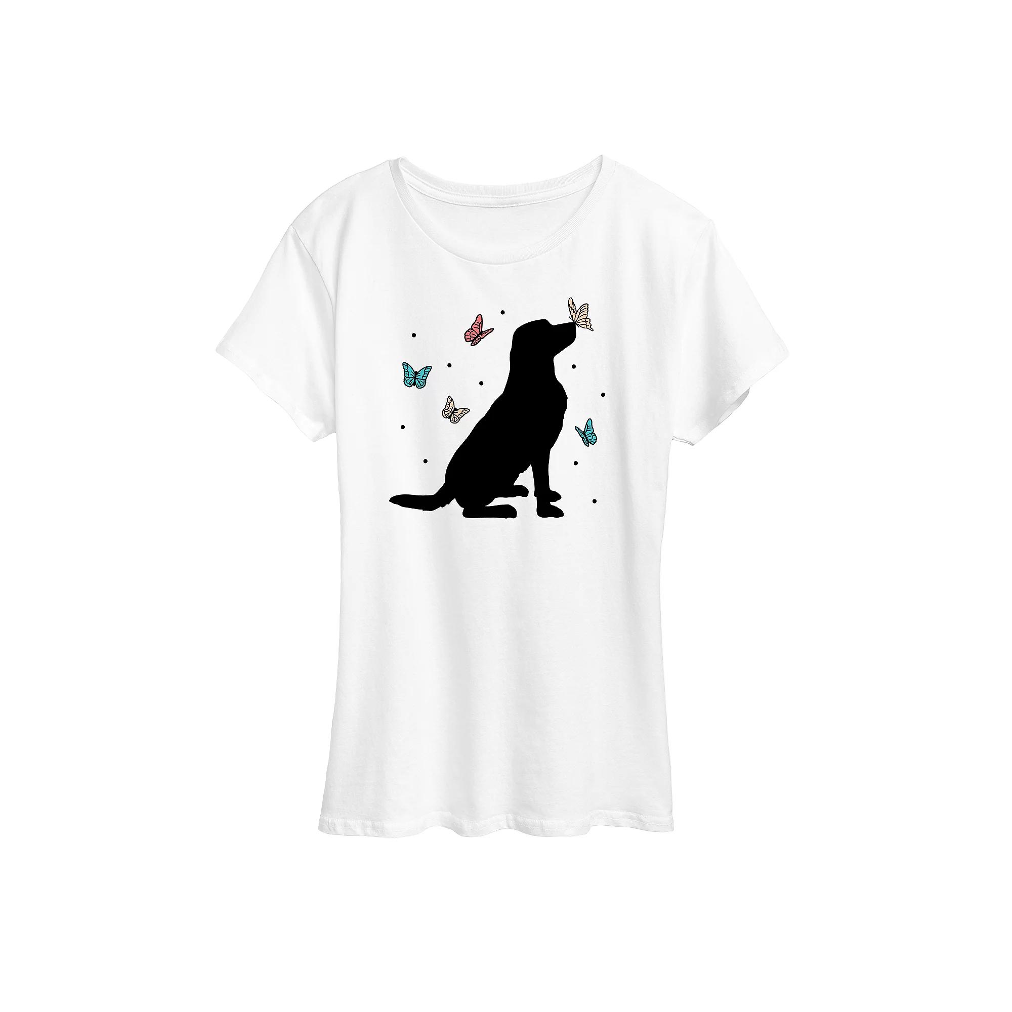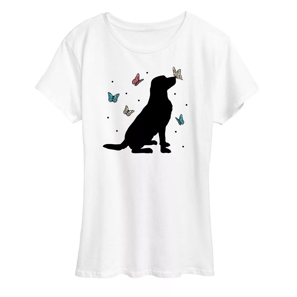 Shell love the look of this womens Dog And Butterflies graphic tee. Shell love the look of this womens Dog And Butterflies graphic tee. FEATURES Scoopneck Short sleevesFABRIC & CARE Cotton, polyester Machine wash Imported Size: Medium. Color: White. Gender: female. Age Group: kids.
