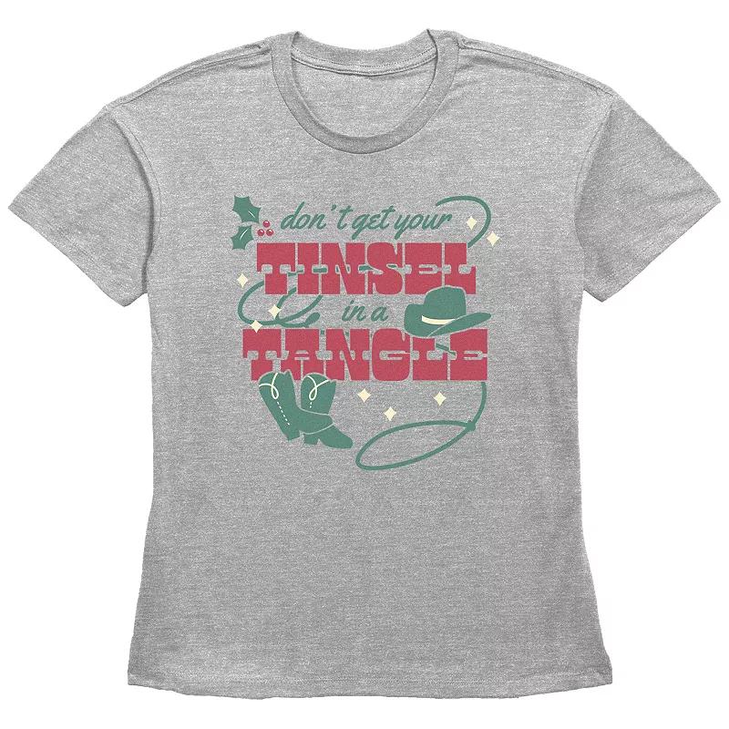 Shell love celebrating the Holiday season with this Womens Dont Get Your Tinsel In A Tangle Graphic Tee. FEATURES Crewneck Short sleevesFABRIC & CARE Cotton, polyester Machine wash Imported Size: X Small. Color: Heather Gray. Gender: female. Age Group: adult.