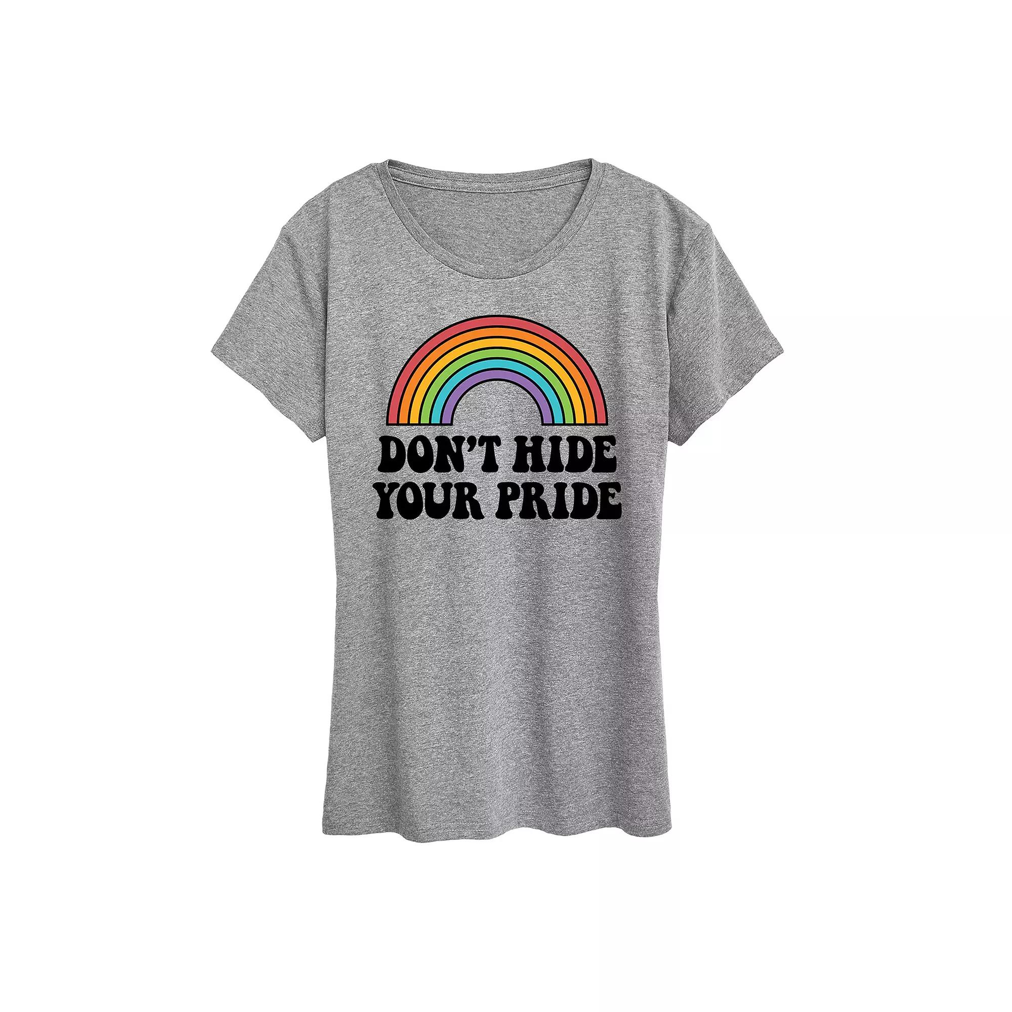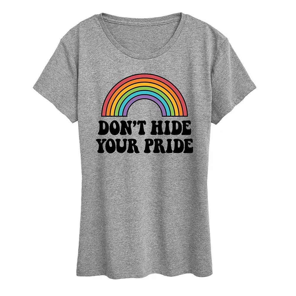 Show off your style with this Womens Dont Hide Your Pride Graphic Tee. FEATURES Short sleeves CrewneckFABRIC & CARE Solid Color: Cotton ; Heather Colors: Cotton/Polyester Machine wash Imported Size: Medium. Color: Med Grey. Gender: female. Age Group: adult.